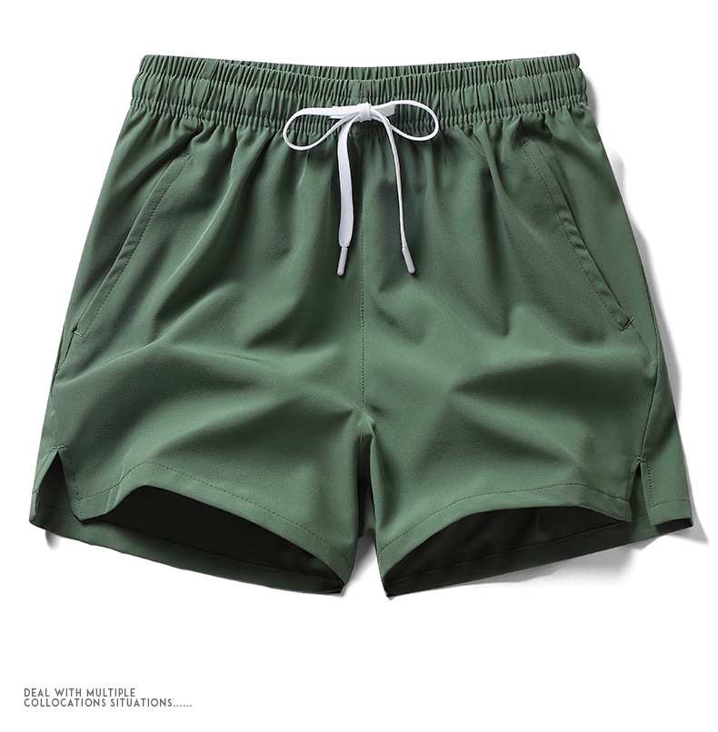 아이스 실크 반바지 여름 남자의 얇은 빠른 건조 스포츠 레저 통기성 달리기 훈련 슬릿 3 점 바지 남자