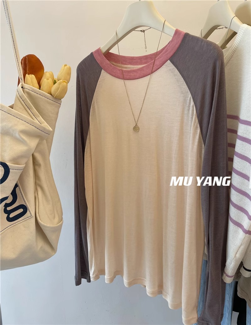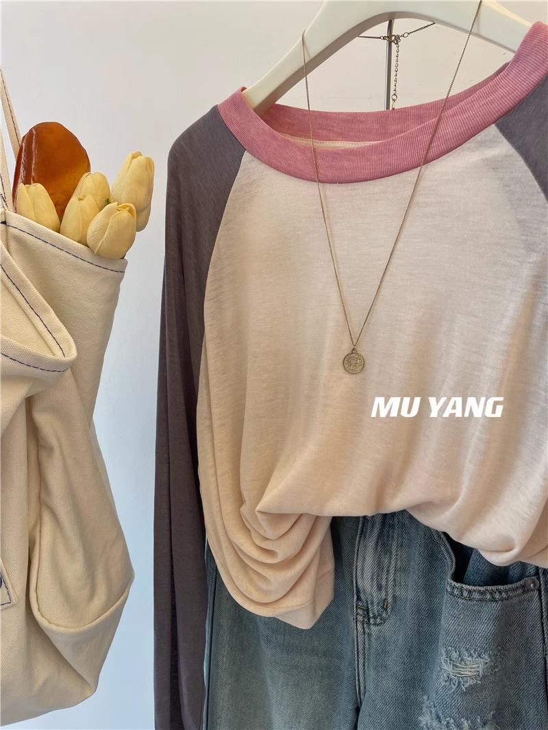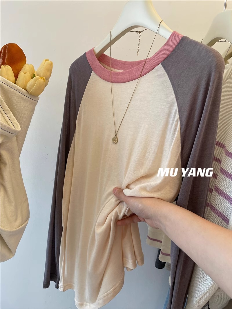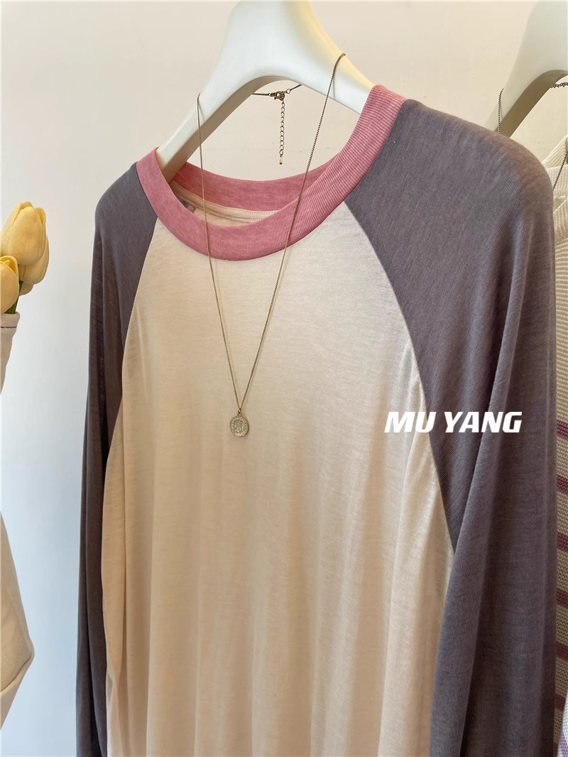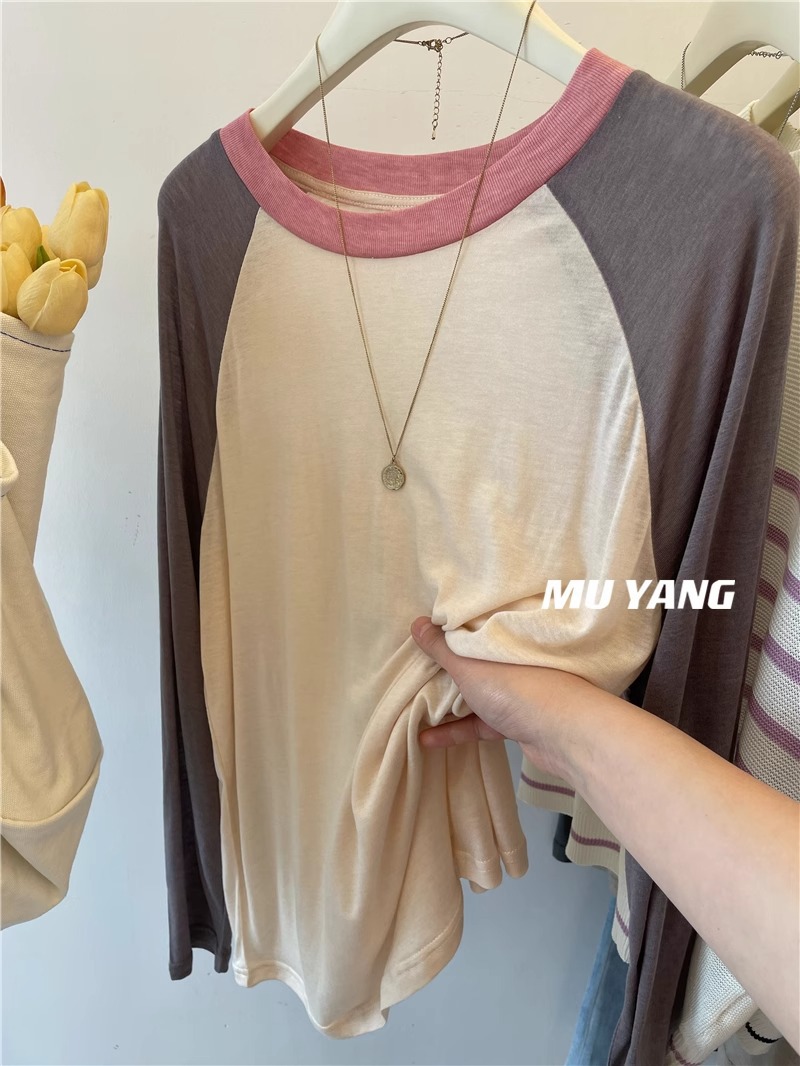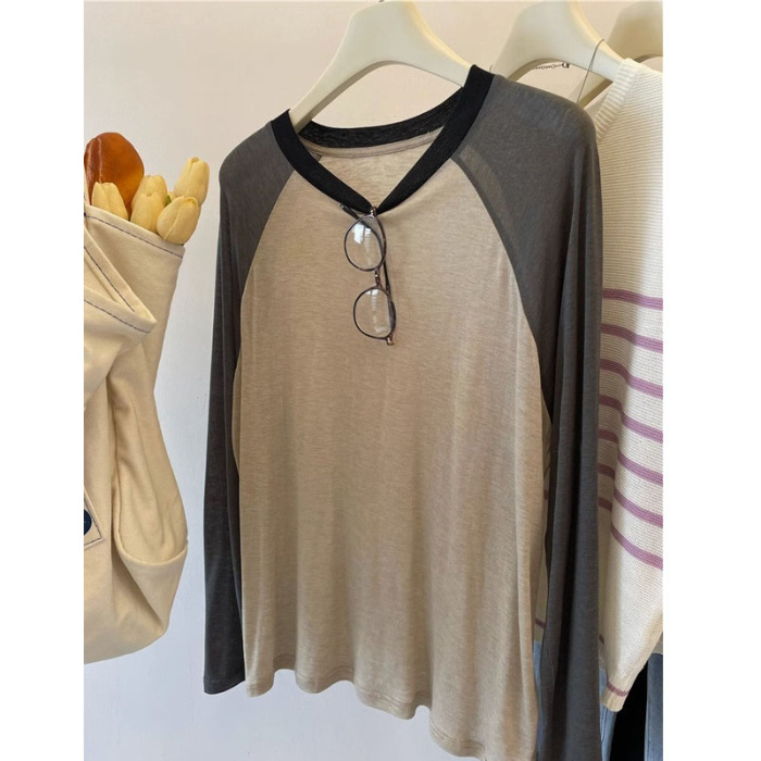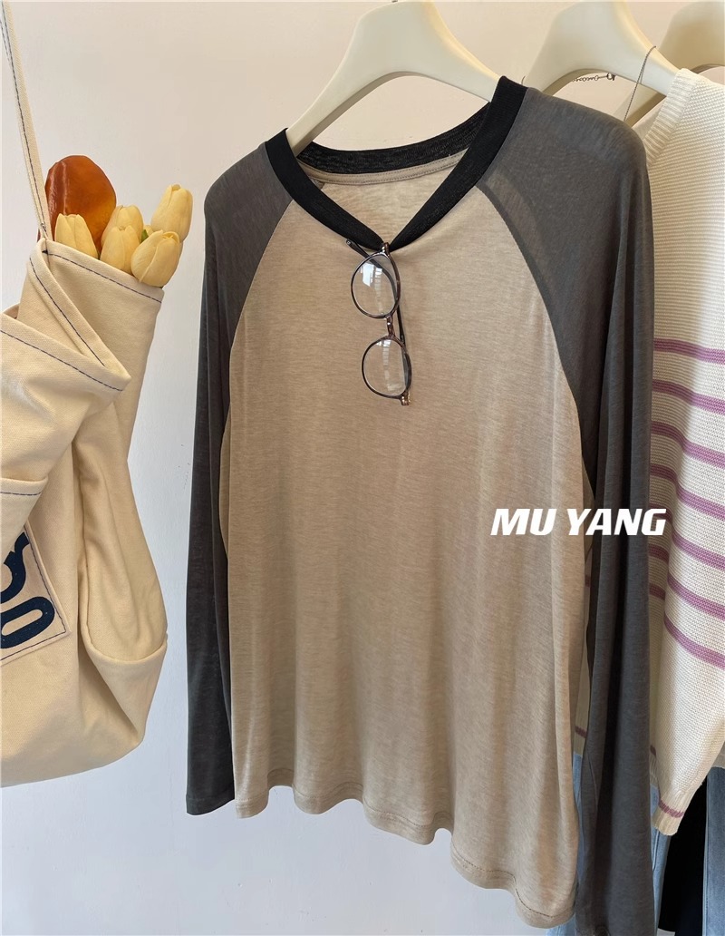 [원래 솜씨] 플러스 사이즈 여성의 부드러운 왁스는 벗고 싶지 않습니다 ~ 미국 대비 소매 라글란 슬리브 마스크 긴소매 티셔츠