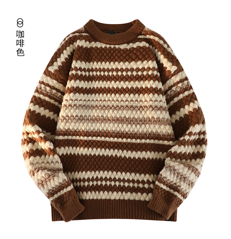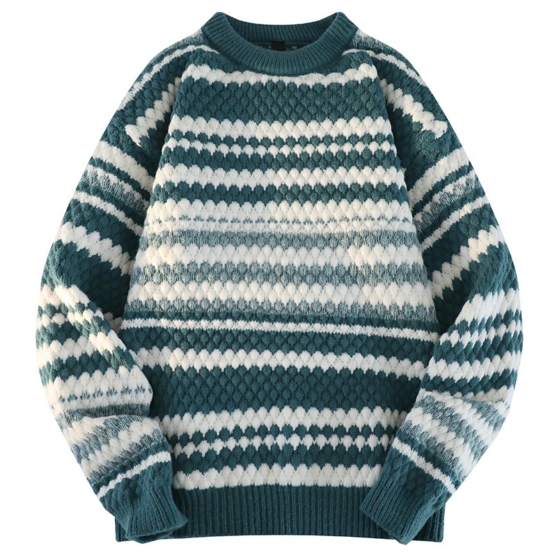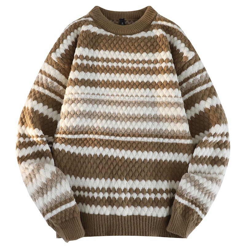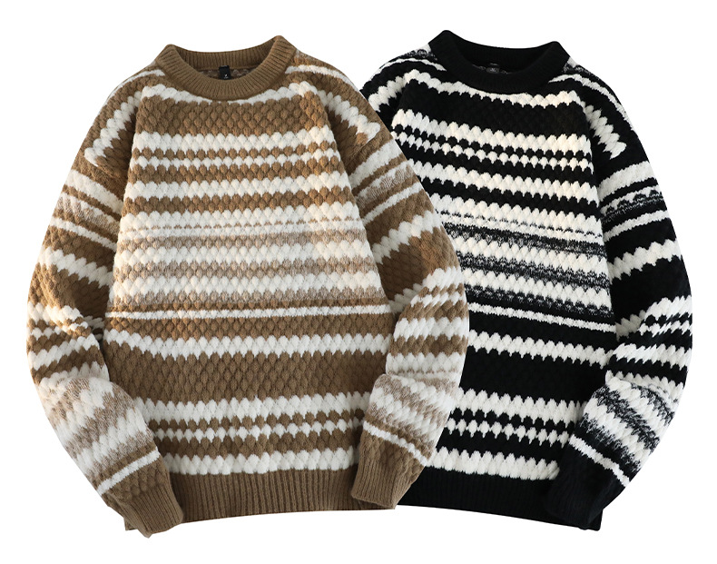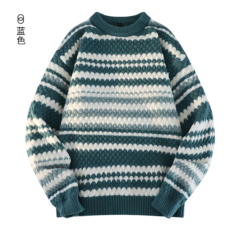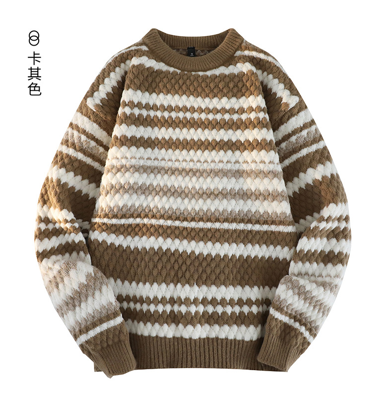 가을 겨울 남성용 국경 간 대외 무역 스트라이프 스웨터, 소년용 루즈한 라운드 넥 탑, 트렌디 브랜드 두꺼운 스웨터 재킷