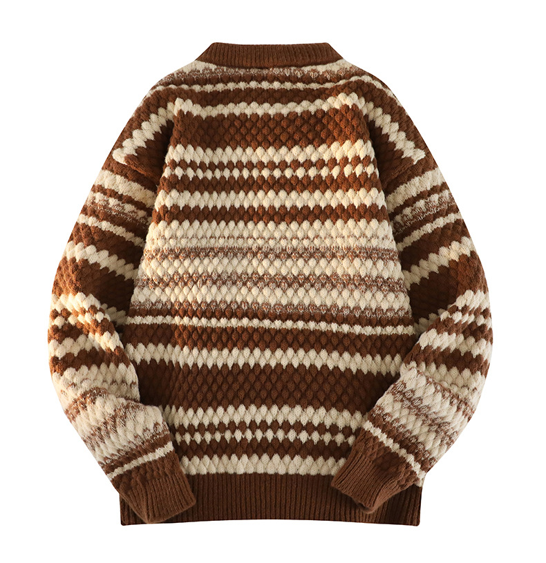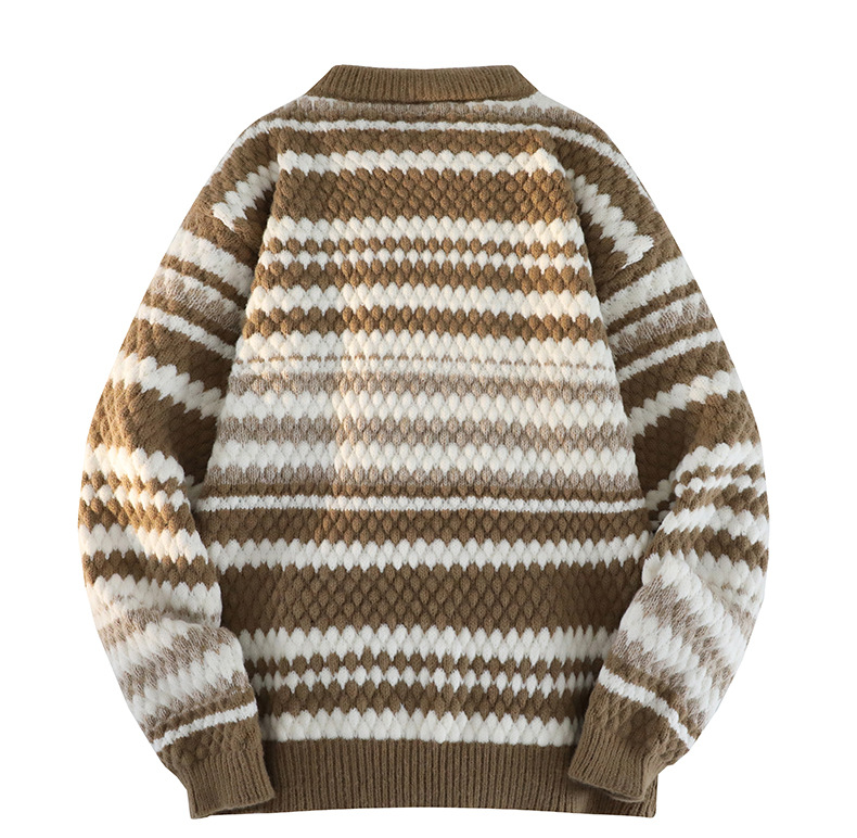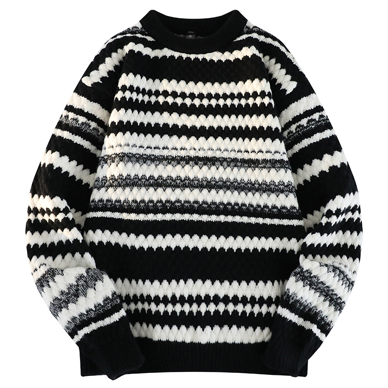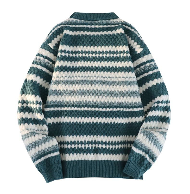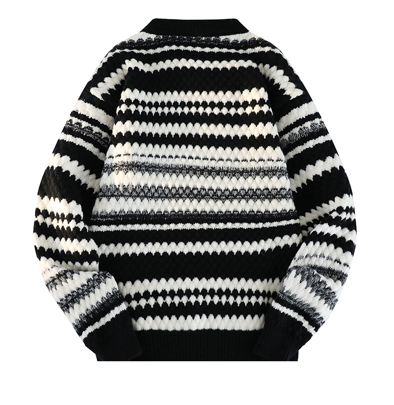 가을 겨울 남성용 국경 간 대외 무역 스트라이프 스웨터, 소년용 루즈한 라운드 넥 탑, 트렌디 브랜드 두꺼운 스웨터 재킷