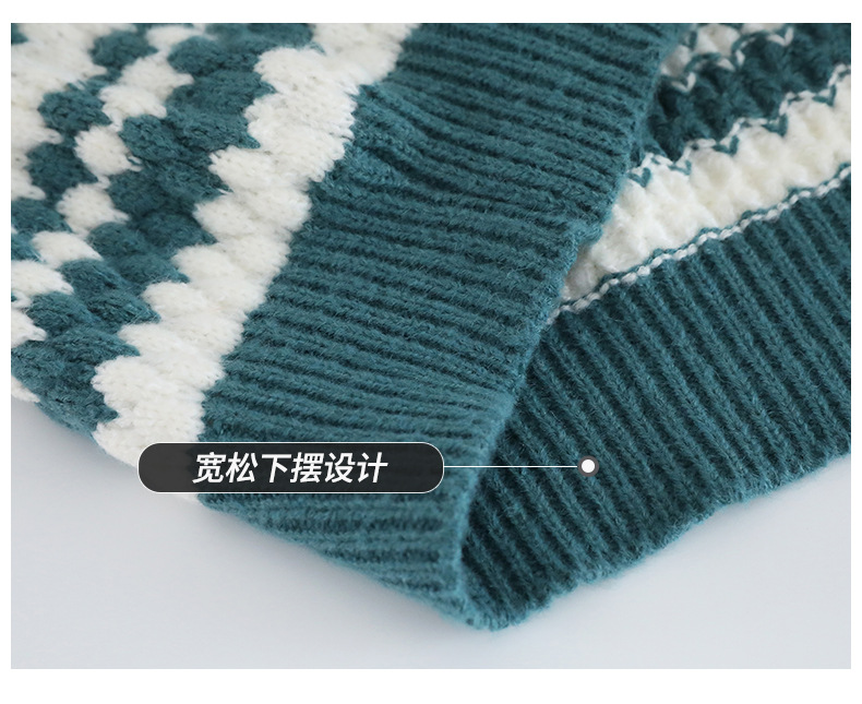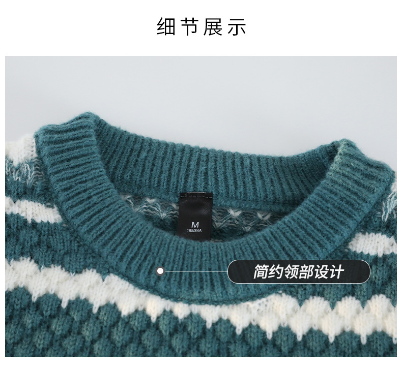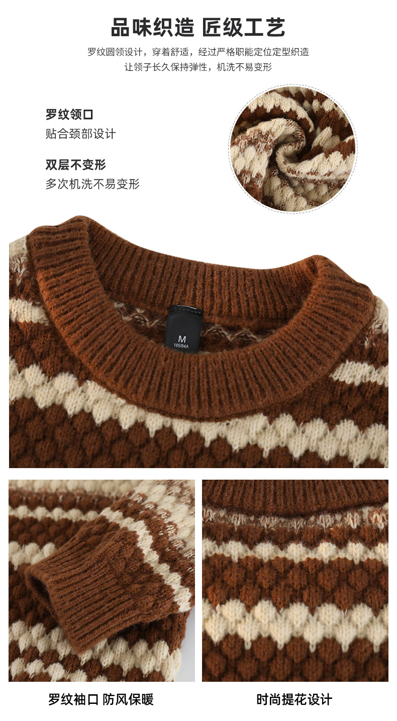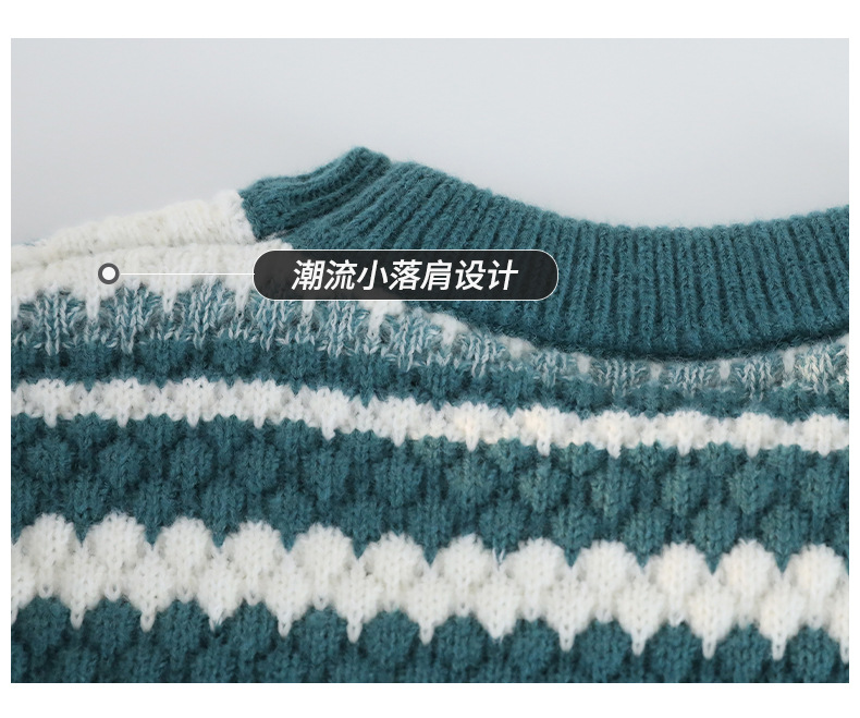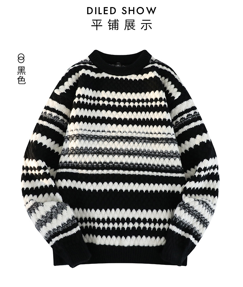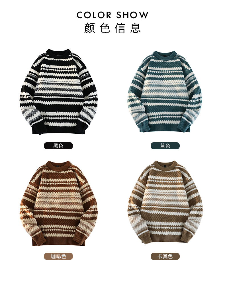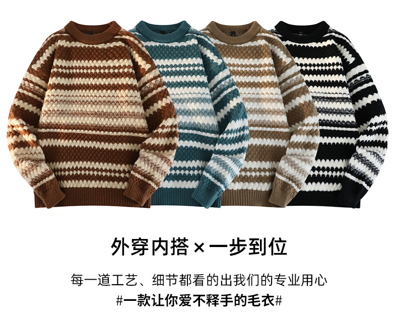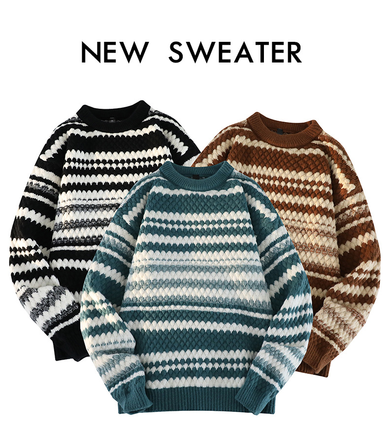 가을 겨울 남성용 국경 간 대외 무역 스트라이프 스웨터, 소년용 루즈한 라운드 넥 탑, 트렌디 브랜드 두꺼운 스웨터 재킷스토어 가기