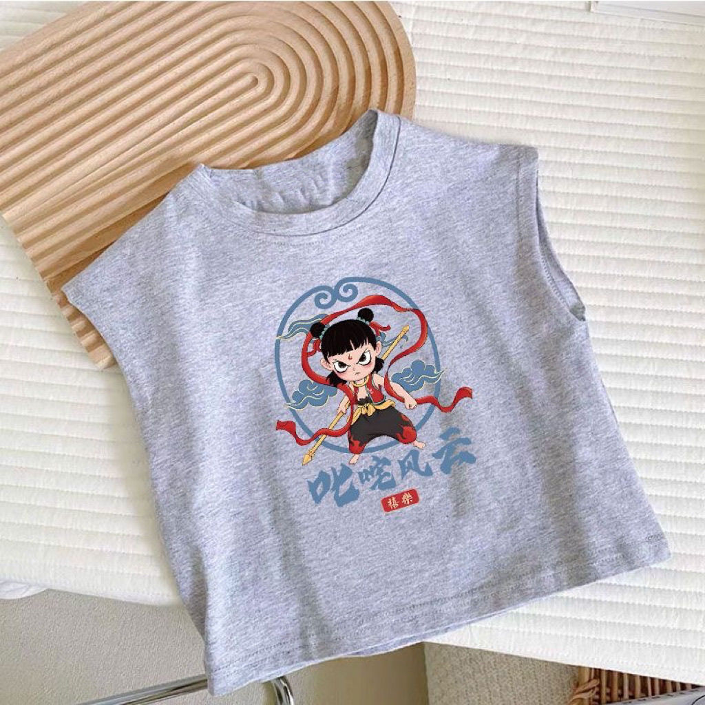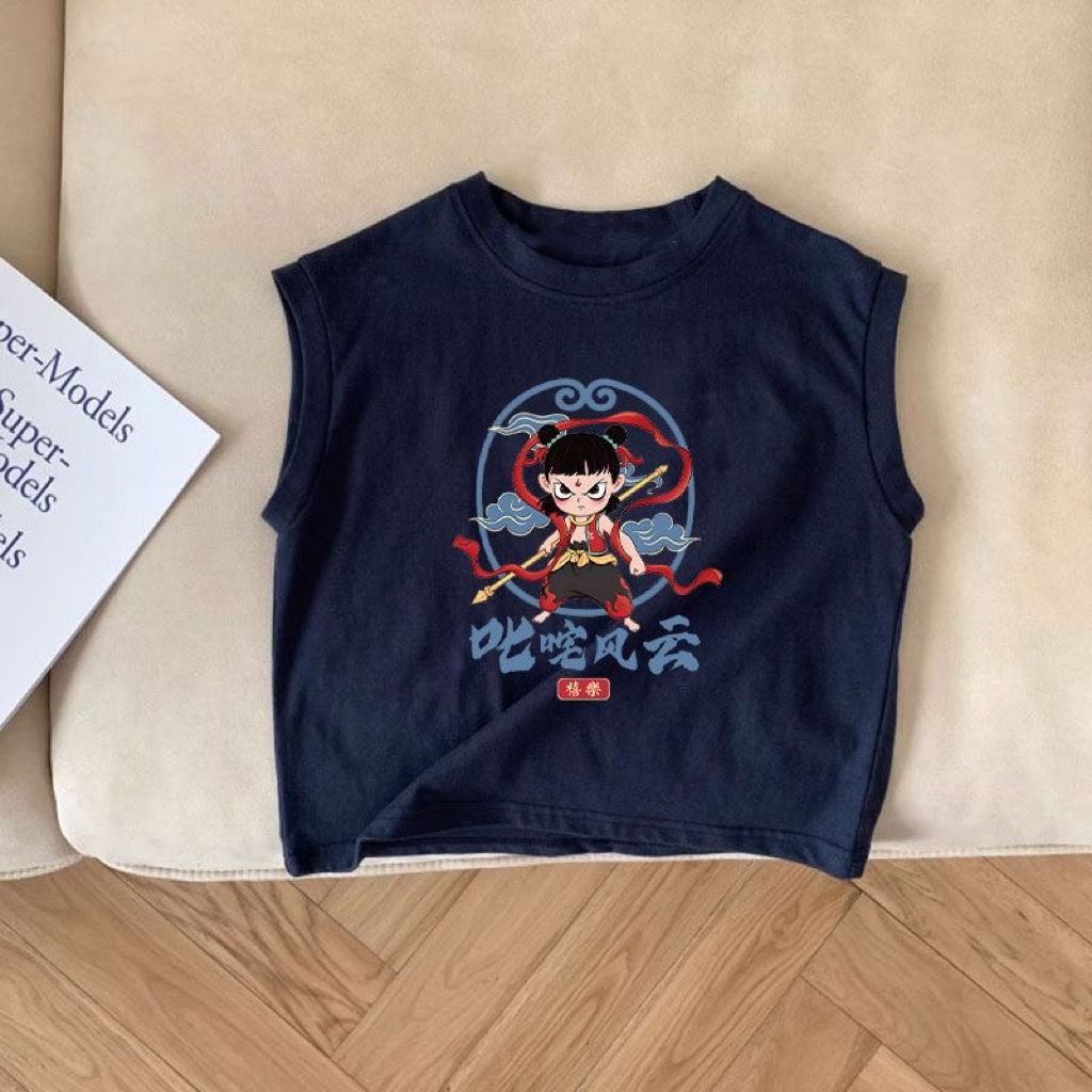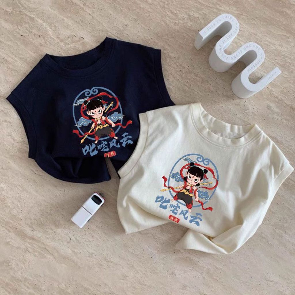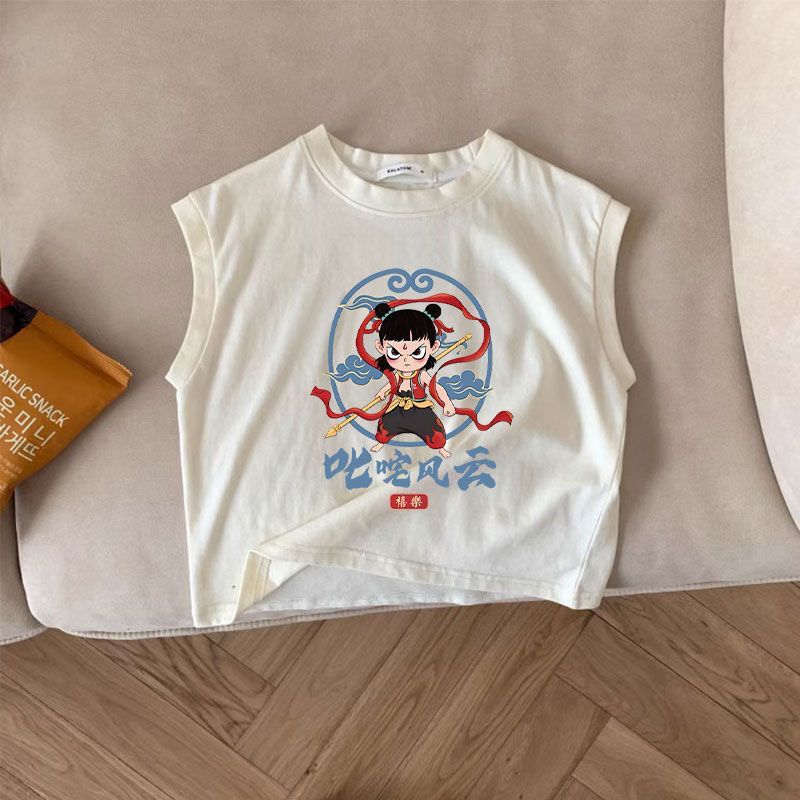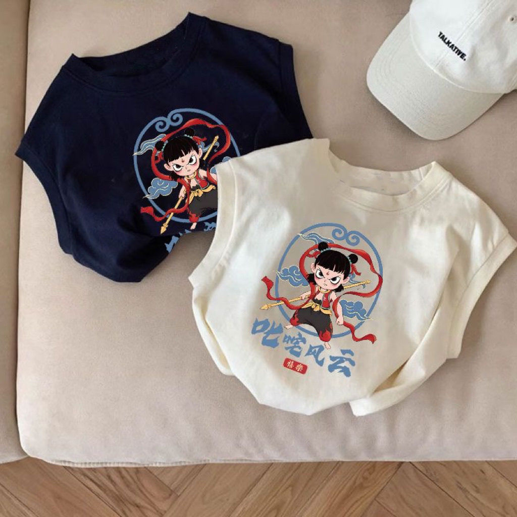 한국식 네자 새 여름 반팔 만화 어린이 티셔츠 여아 코튼 보이즈 탑 루즈 옷 조끼