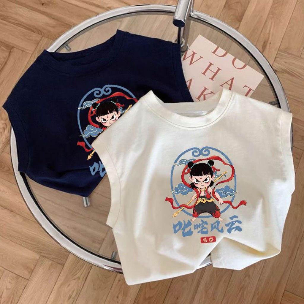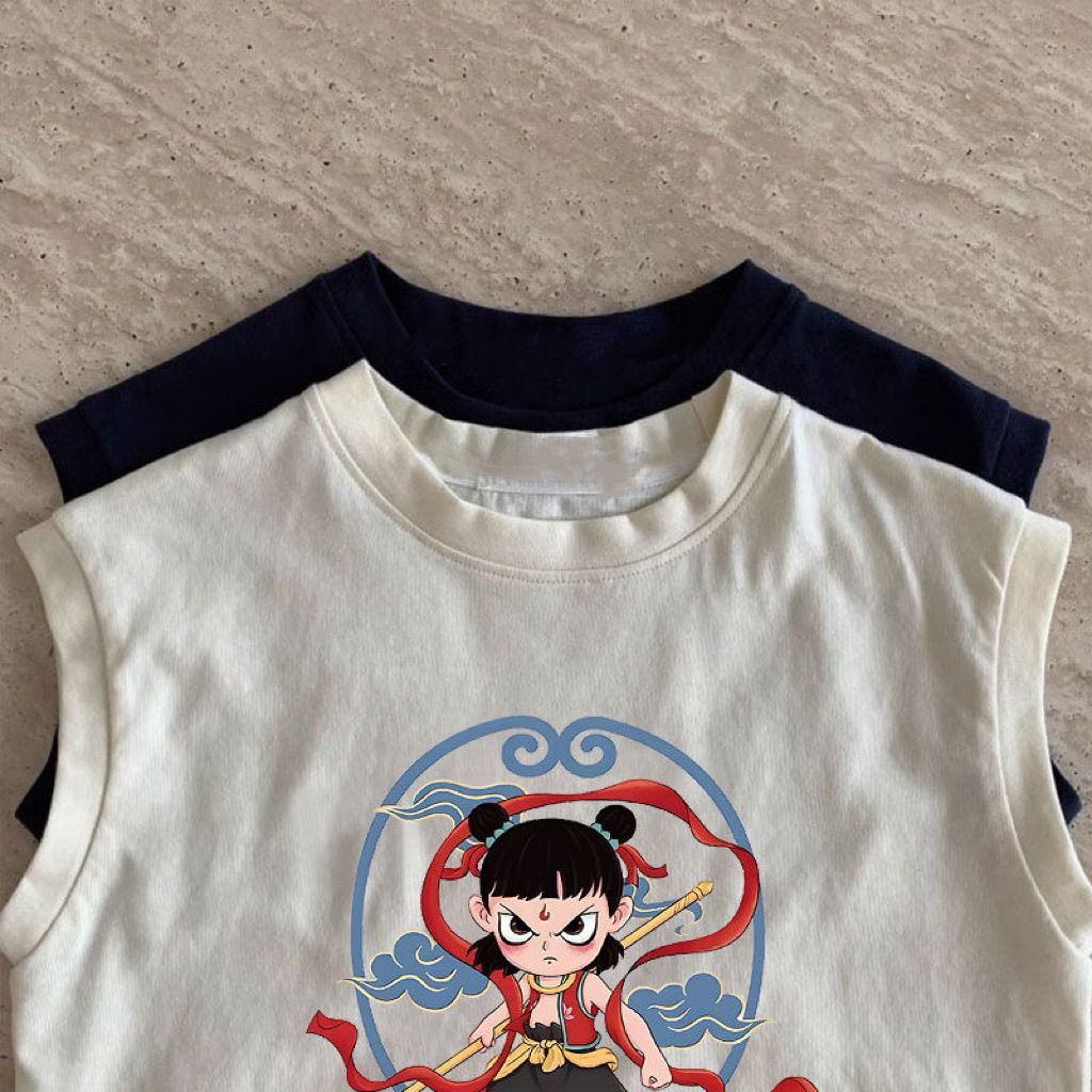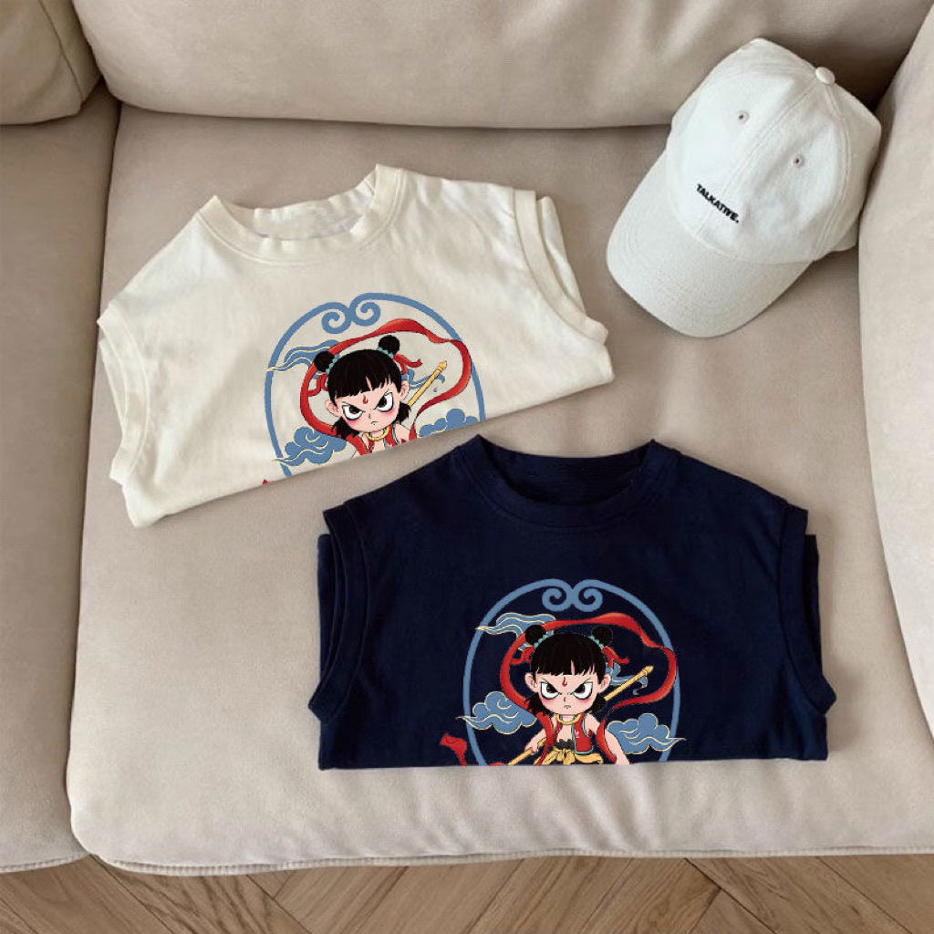 한국식 네자 새 여름 반팔 만화 어린이 티셔츠 여아 코튼 보이즈 탑 루즈 옷 조끼스토어 가기