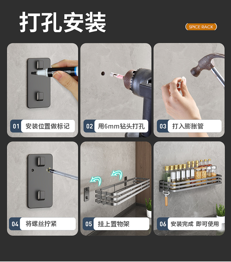 공장 주방 수납 선반, 펀치 없는 수납, 벽걸이형 조미료 선반, 다기능 선반