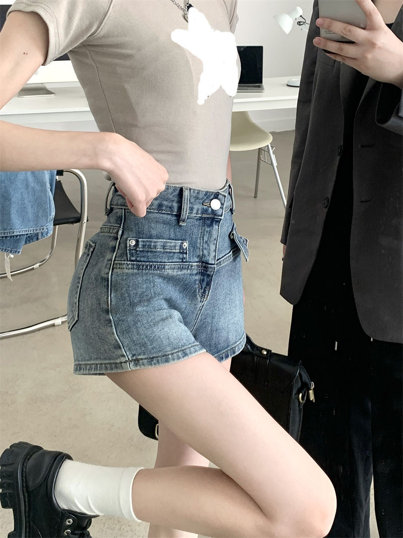 뜨거운 소녀 빈티지 데님 반바지 여성 여름 새로운 Ins 유행 높은 허리 슬리밍 A-캐릭터 작은 남자 스트레이트-다리 넓은 다리 바지스토어 가기