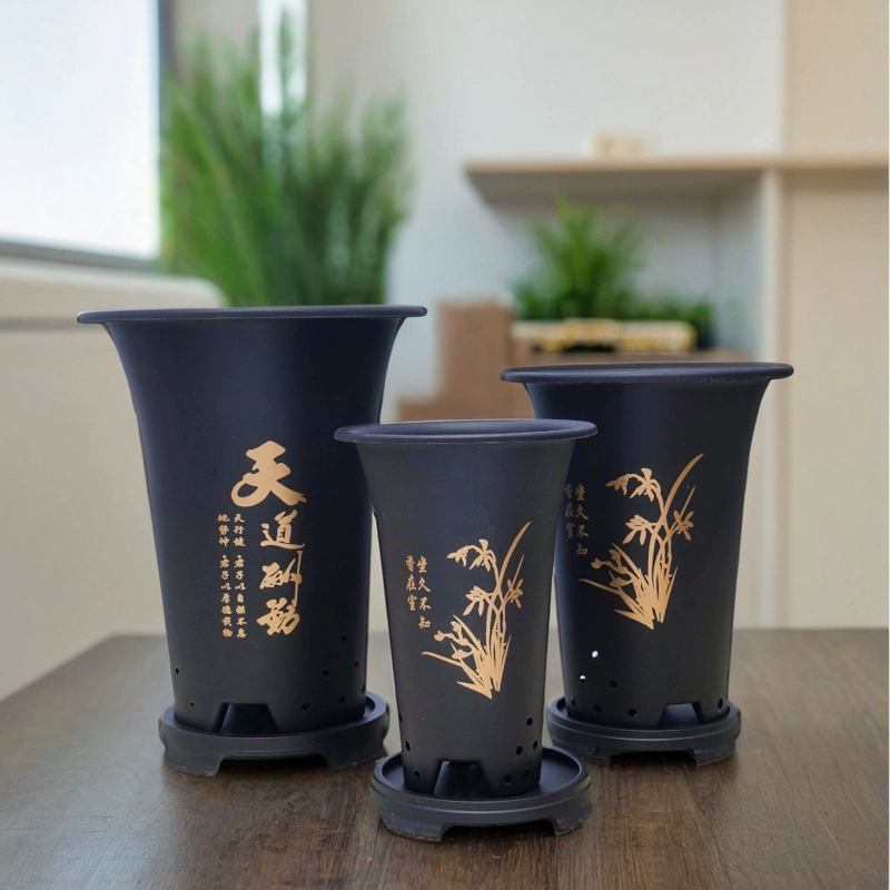 난초 화분, 통기성 뿌리 재배 특수 화분, 측면 구멍이 있는 두꺼운 수지 크고 작은 모조 보라색 모래 덴드로비움 높은 플라스틱 화분스토어 가기