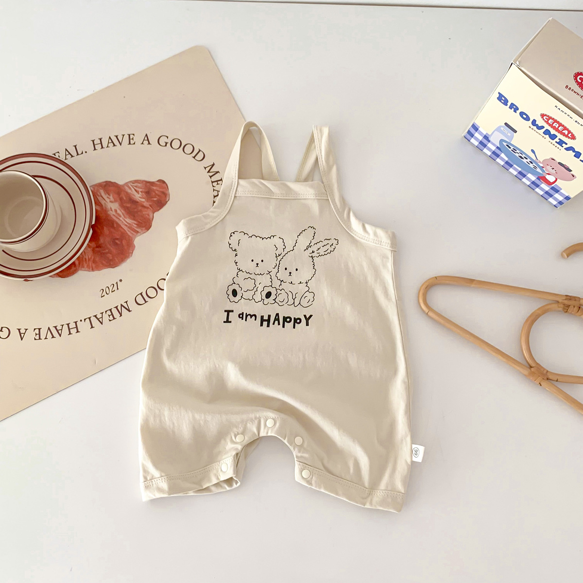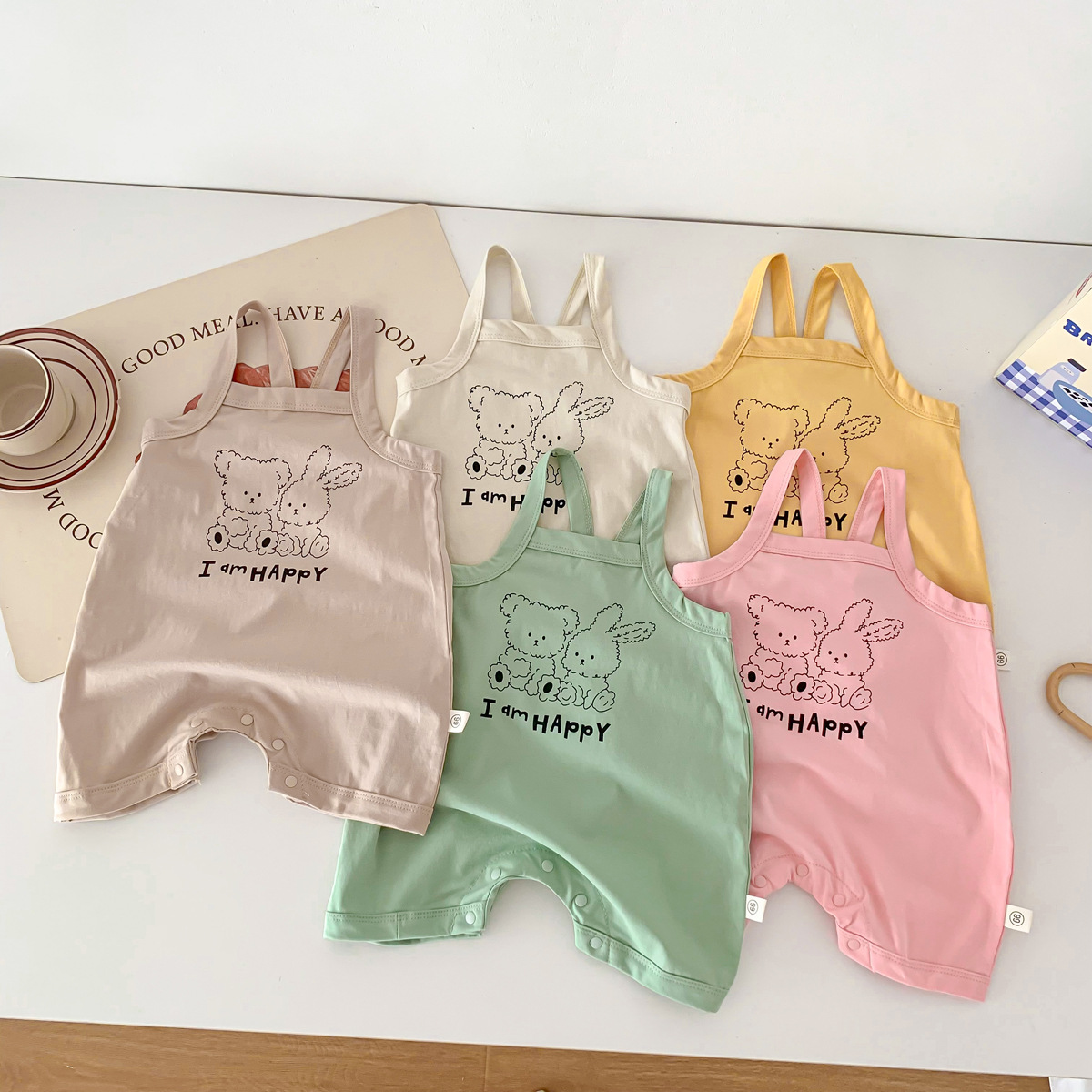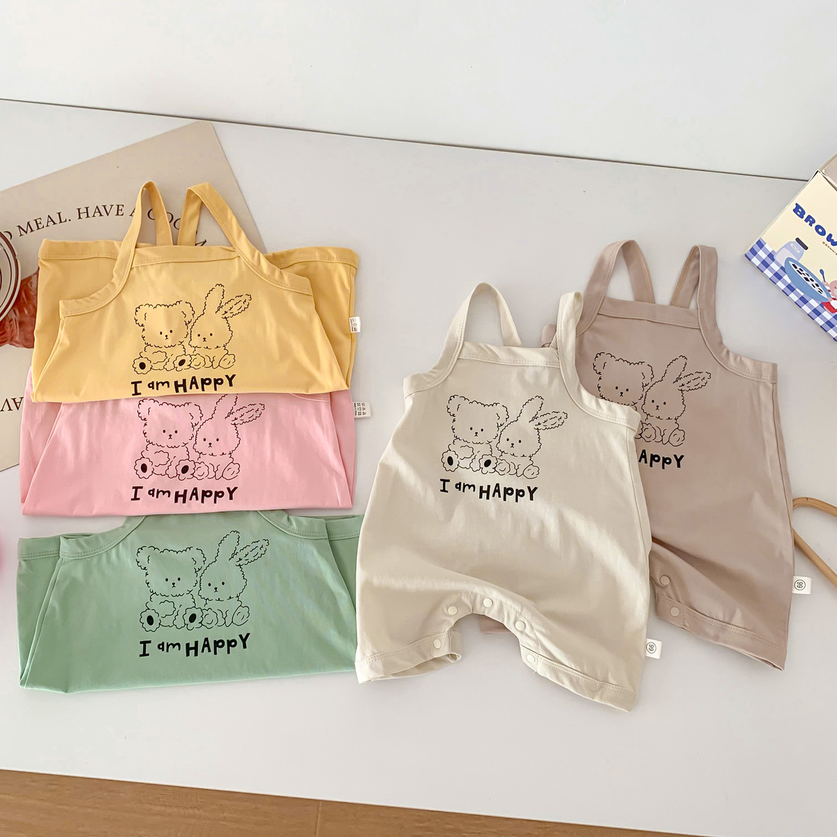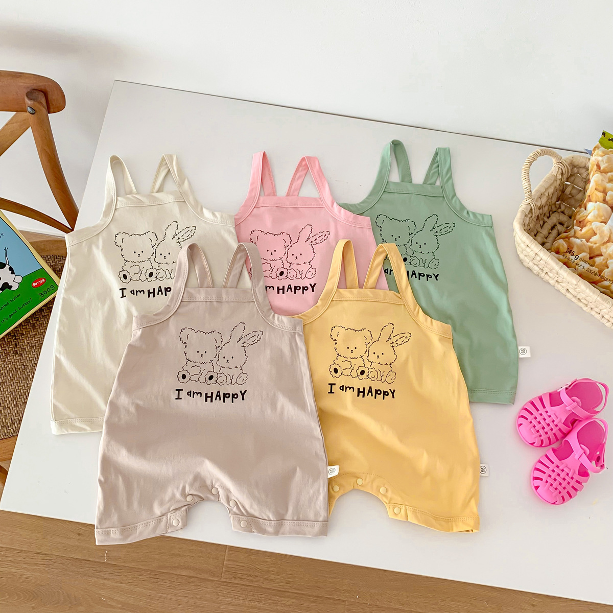아기의 여름 새로운 Camisole Hayi 등반 소년 소녀 얇은 통기성 면 편안한 만화 토끼 소년 세트스토어 가기