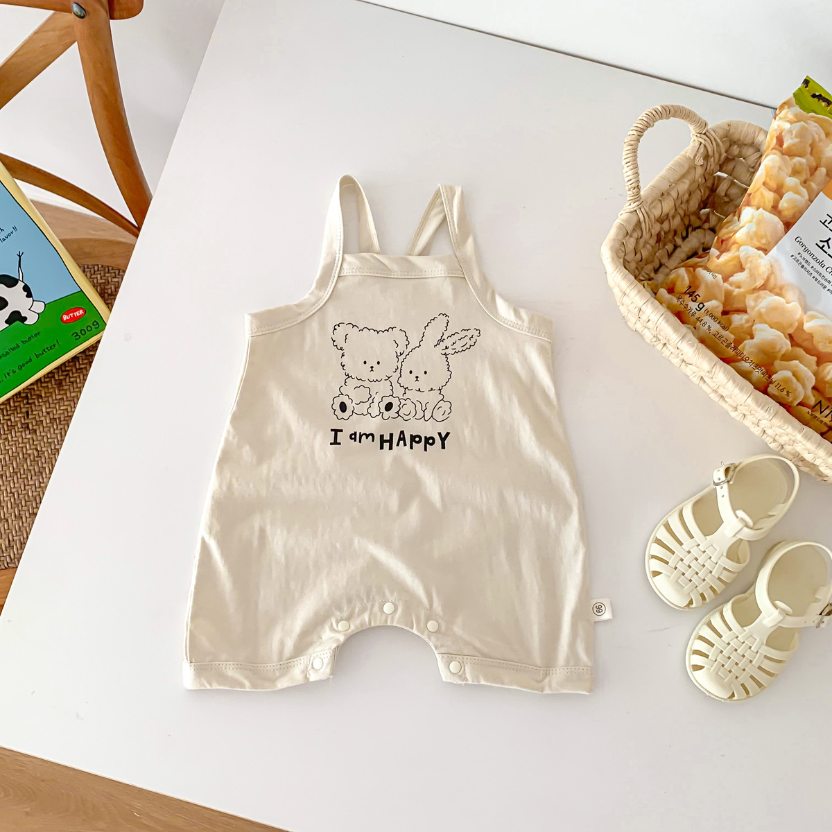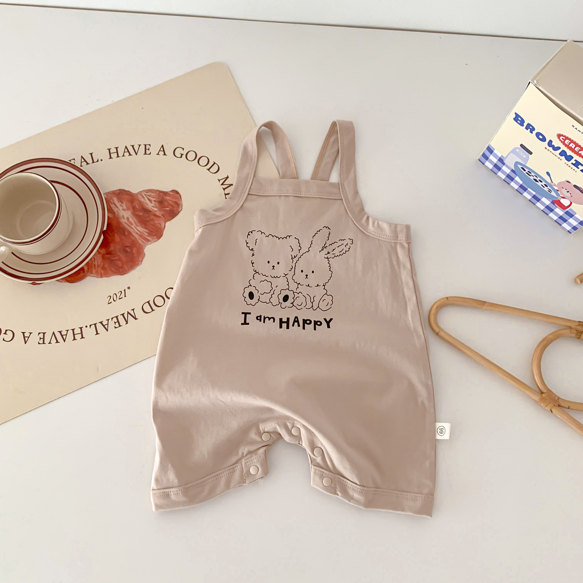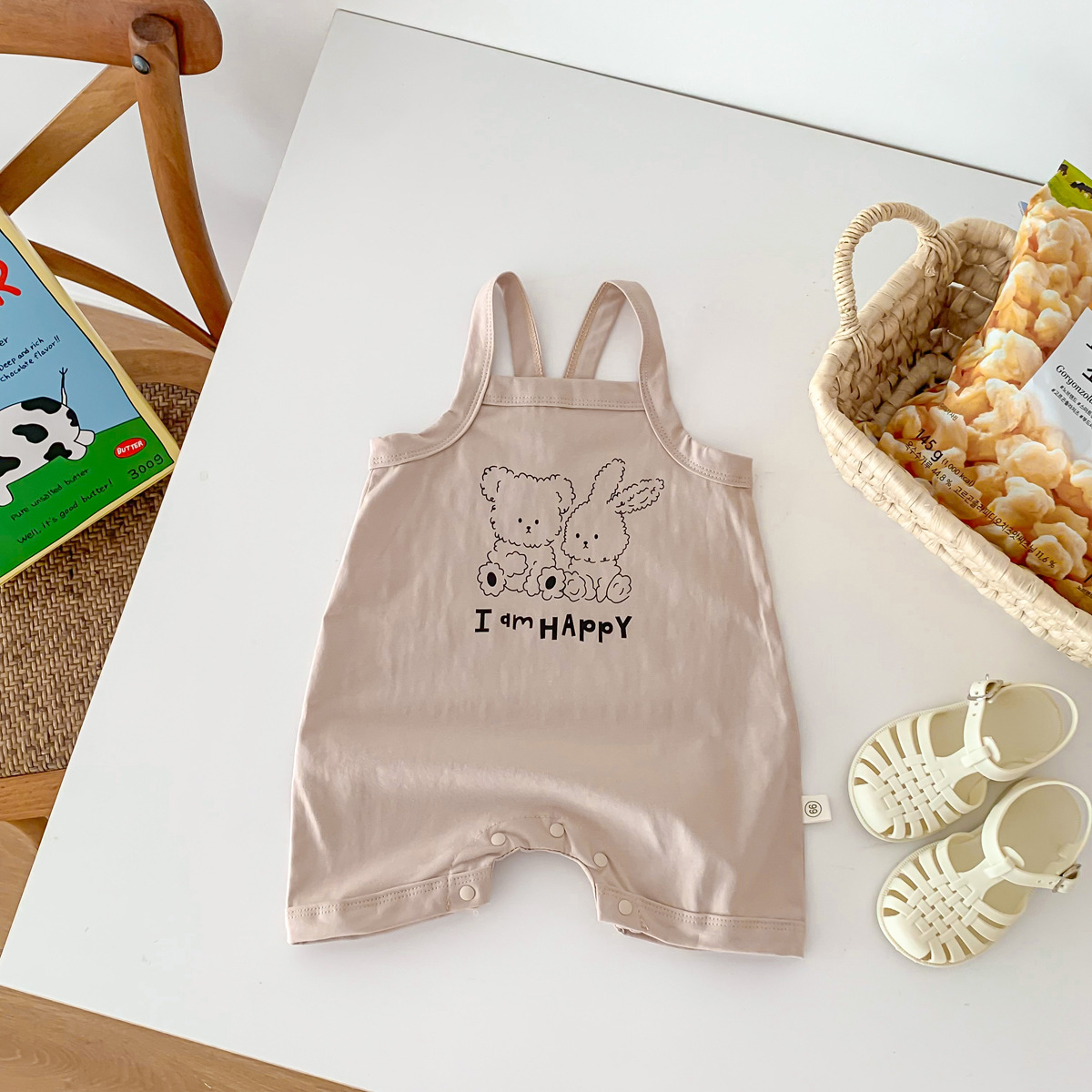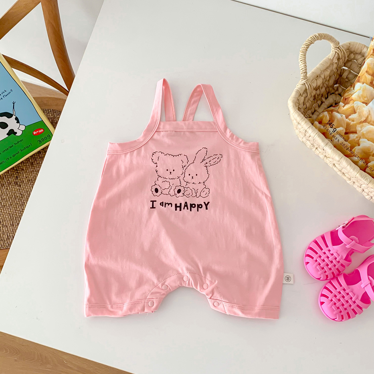 아기의 여름 새로운 Camisole Hayi 등반 소년 소녀 얇은 통기성 면 편안한 만화 토끼 소년 세트스토어 가기