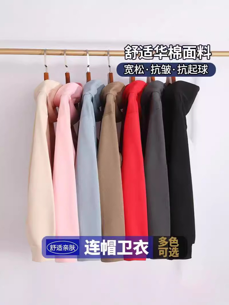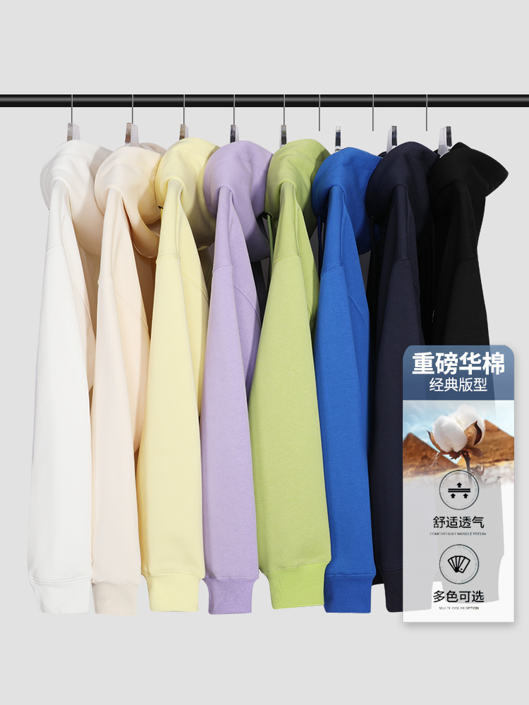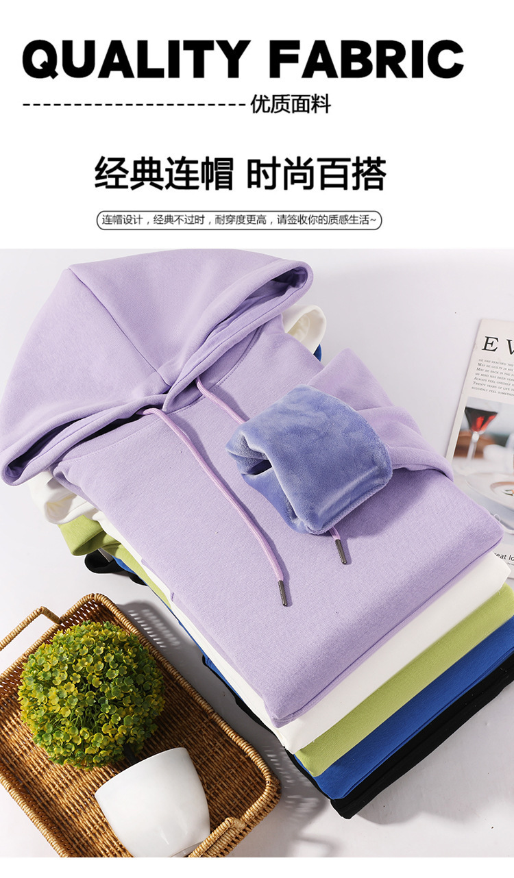 후드 티셔츠 320g 중국 면 헤비급 후드 티셔츠 커플 플러스 벨벳 바닥 겉옷 솔리드 컬러 오프 숄더 후드 도매스토어 가기