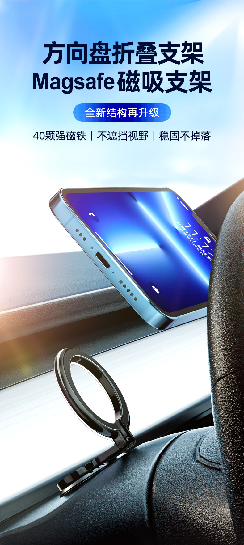 새로운 Magsafe 자동차 마그네틱 링 브래킷 자동차 스티어링 휠 무료 자기 시트 접이식 내비게이션 브래킷 도매