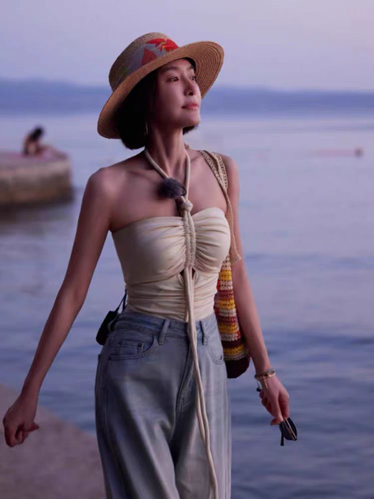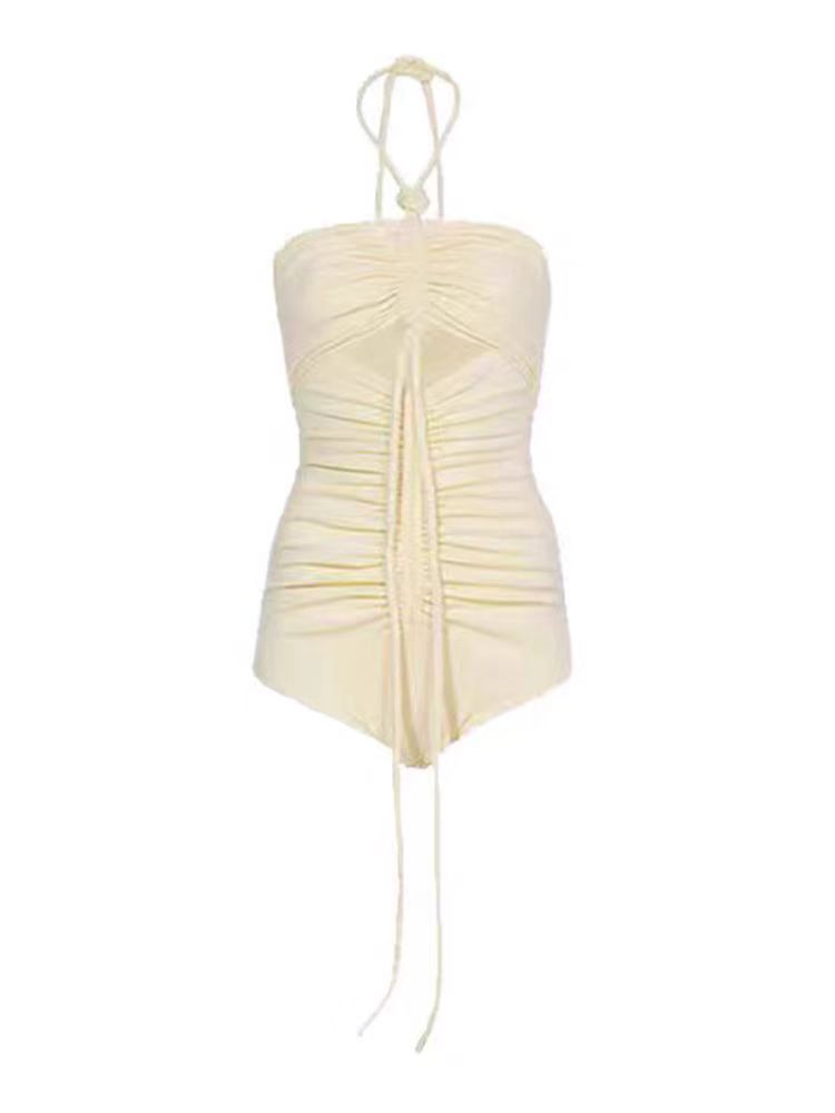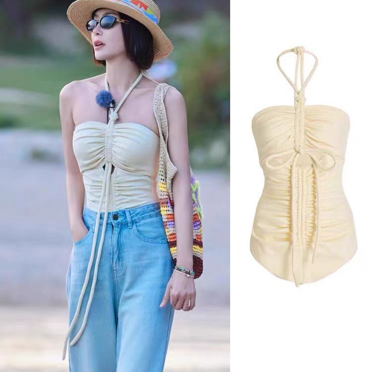 한국 인 스타일 진란 스타일 순수한 욕망 작은 향기로운 스타일 끈이없는 목 그리기 간단한 결합 된 수영복 여성 수영복