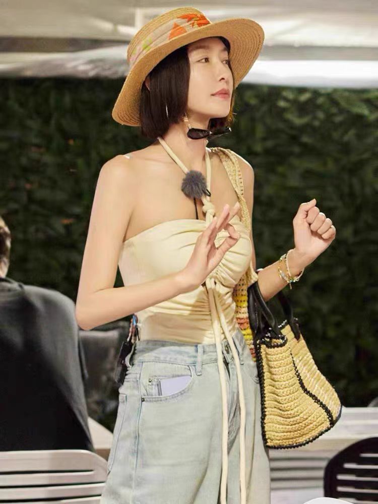 한국 인 스타일 진란 스타일 순수한 욕망 작은 향기로운 스타일 끈이없는 목 그리기 간단한 결합 된 수영복 여성 수영복스토어 가기