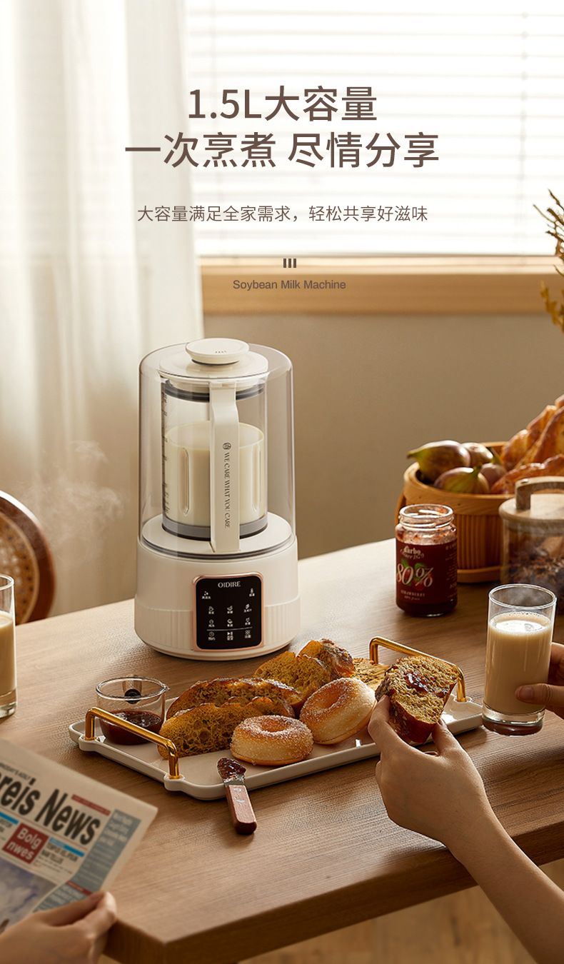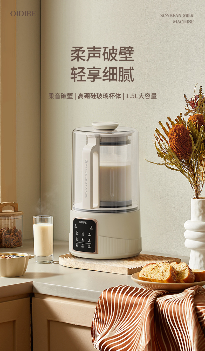 OIDIRE 다기능 두유 기계 가정용 자동 소프트 사운드 벽 속보 기계 1.5L 대용량 필터 무료 요리 기계