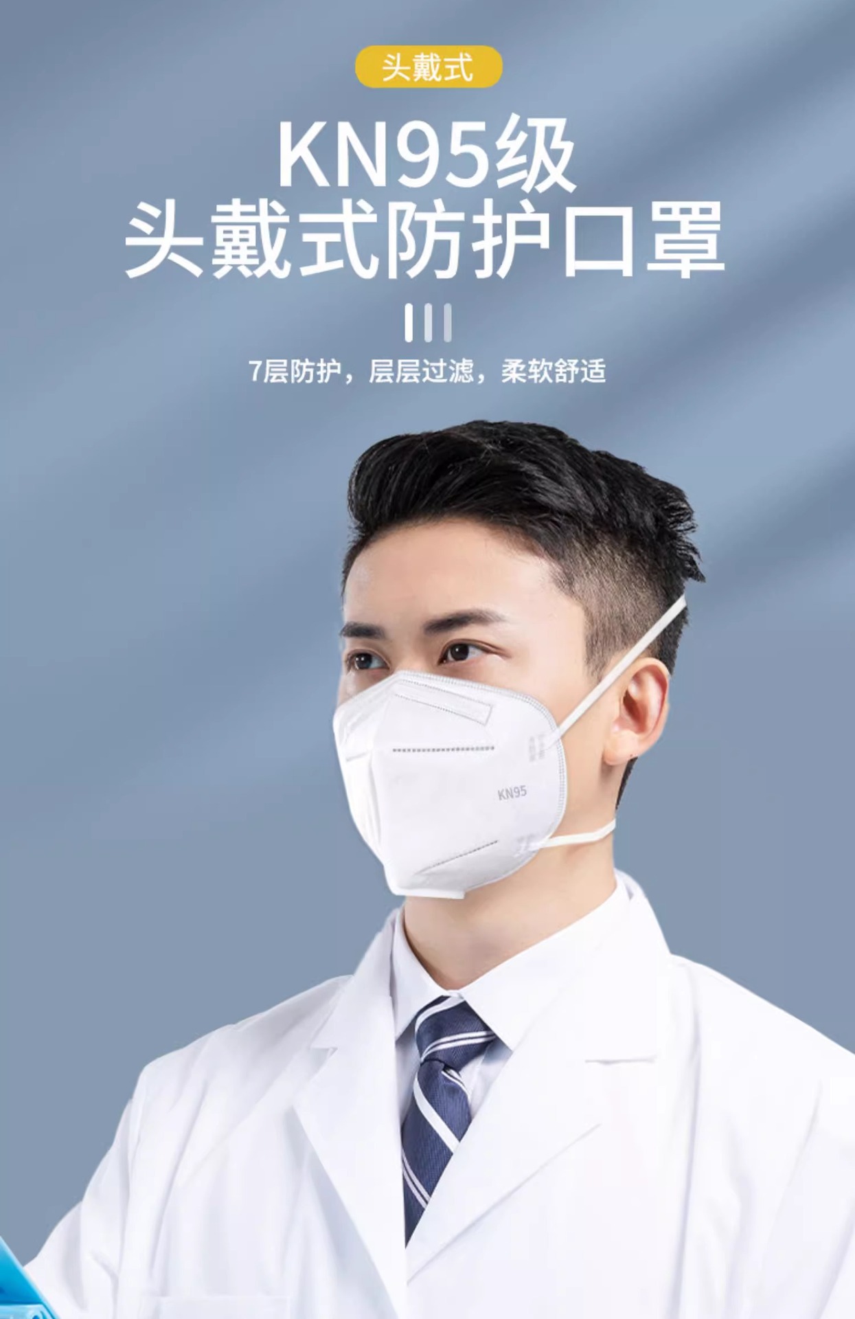 • 8겹 헤드밴드 [흰색 50개 | 밸브 없음] + 조절 가능한 이어 스트랩 + 스폰지 스트립