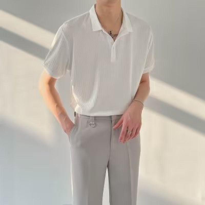 가벼운 성숙한 스타일 폴로 셔츠 남자의 여름 줄무늬 Lel Paul 비즈니스 티셔츠 반팔 남자의 슬림 핏 탑스토어 가기