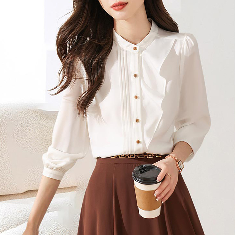 독특한 디자인 하이 엔드 센스 셔츠 여성의 2023 가을 새로운 캐주얼 올 매치 패션 통근 탑