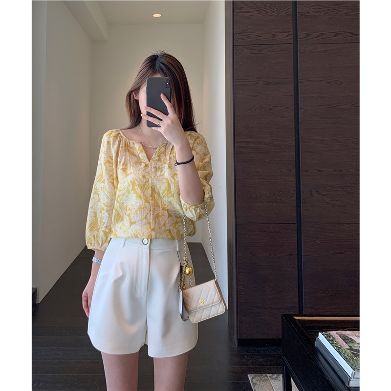 气质的V型领口,领子前襟设有纽扣温柔的知性美!