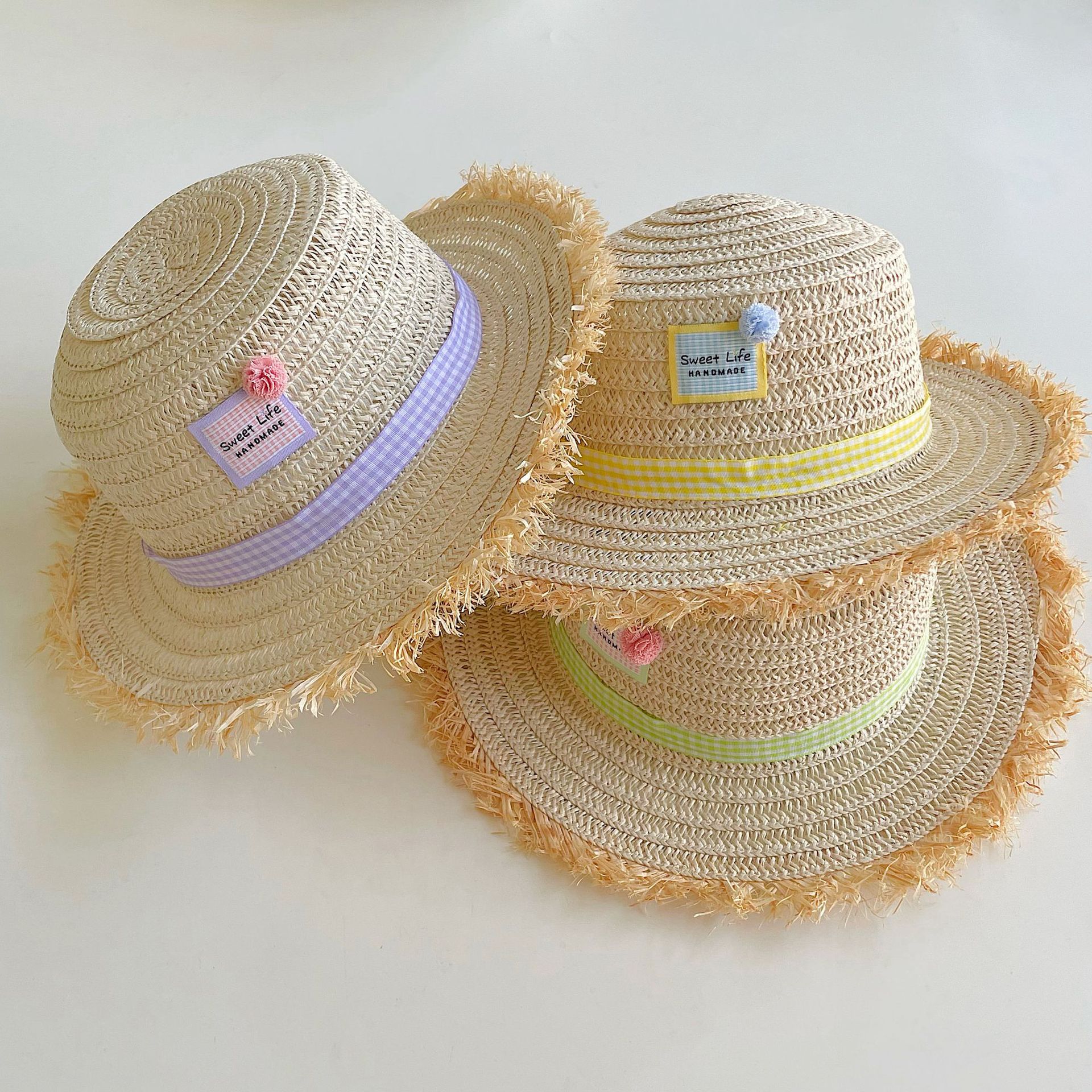 어린이 여름 태양 밀짚 모자 소녀 모자 태양 보호 모자 아기 우아한 일본 휴가 스타일 큰 챙 해변 모자