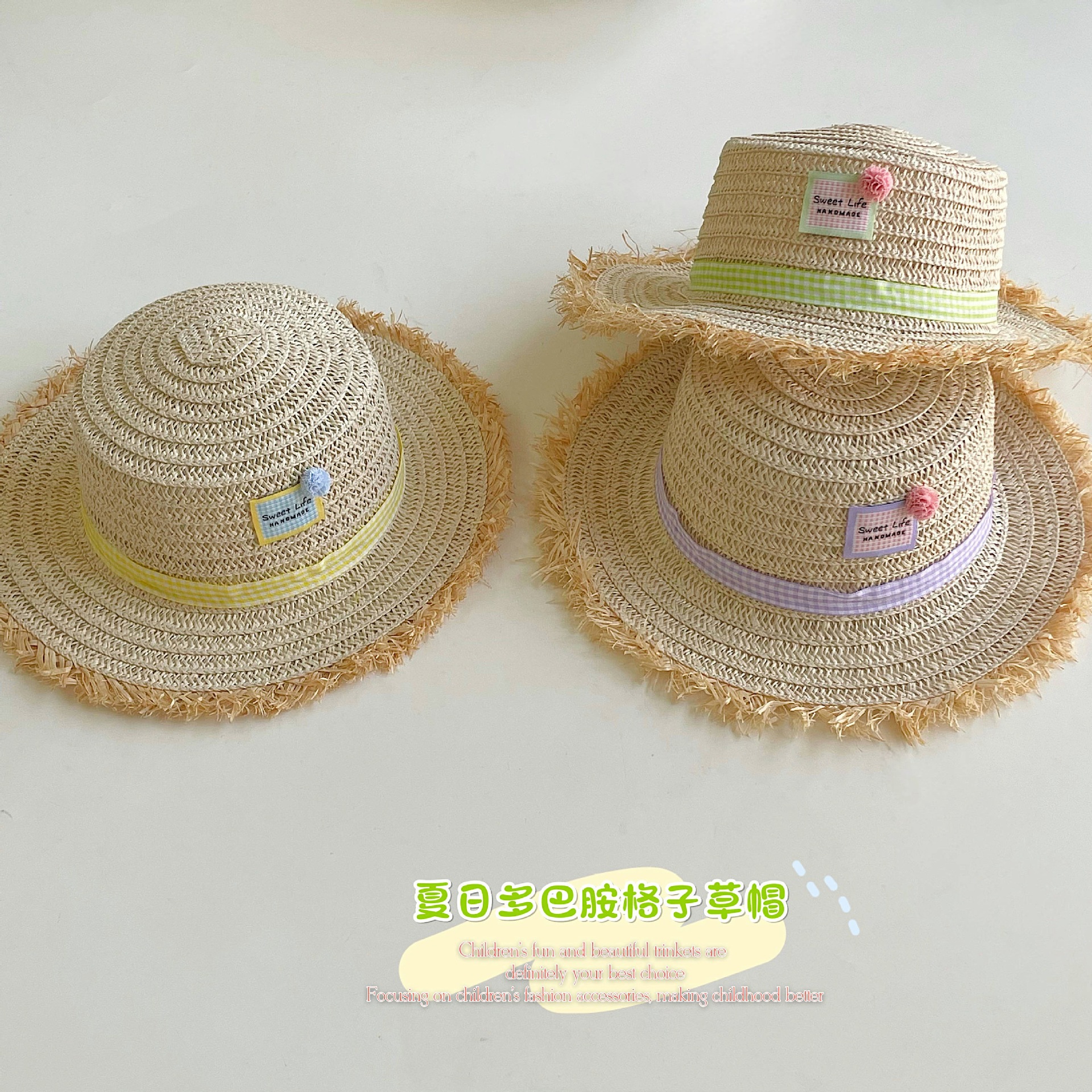 布标格子草帽