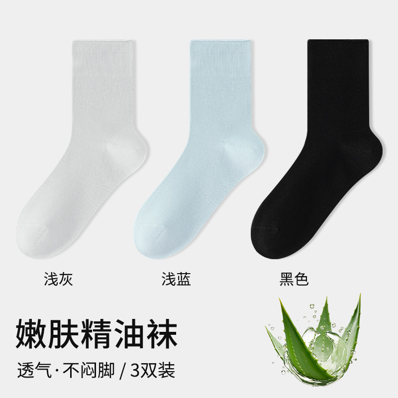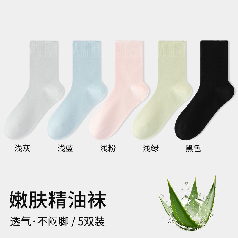 [알로에 베라 보습] 에센셜 오일 필 양말 여성 순면 여름 얇은 2025 새로운 폭발 문 중형 튜브