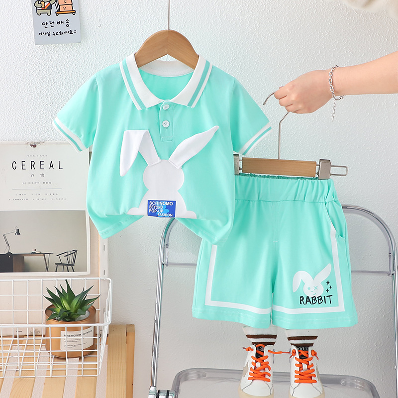 여름 소녀 패치 토끼 반팔 패션 스트리트 슈트 트렌디 여름 새 베이비 스타일 슈트 직접 판매스토어 가기
