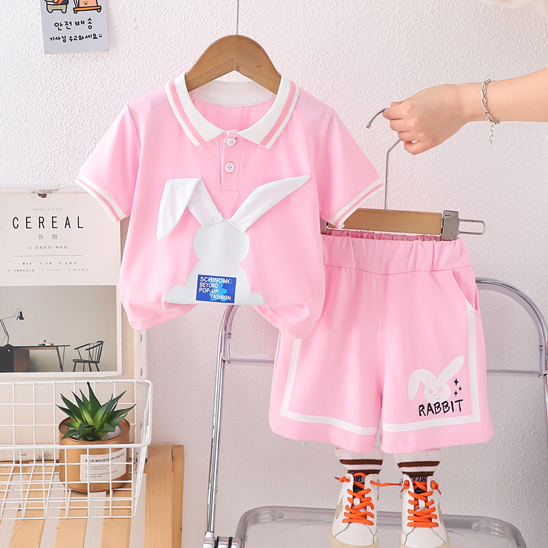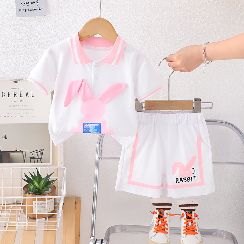 여름 소녀 패치 토끼 반팔 패션 스트리트 슈트 트렌디 여름 새 베이비 스타일 슈트 직접 판매