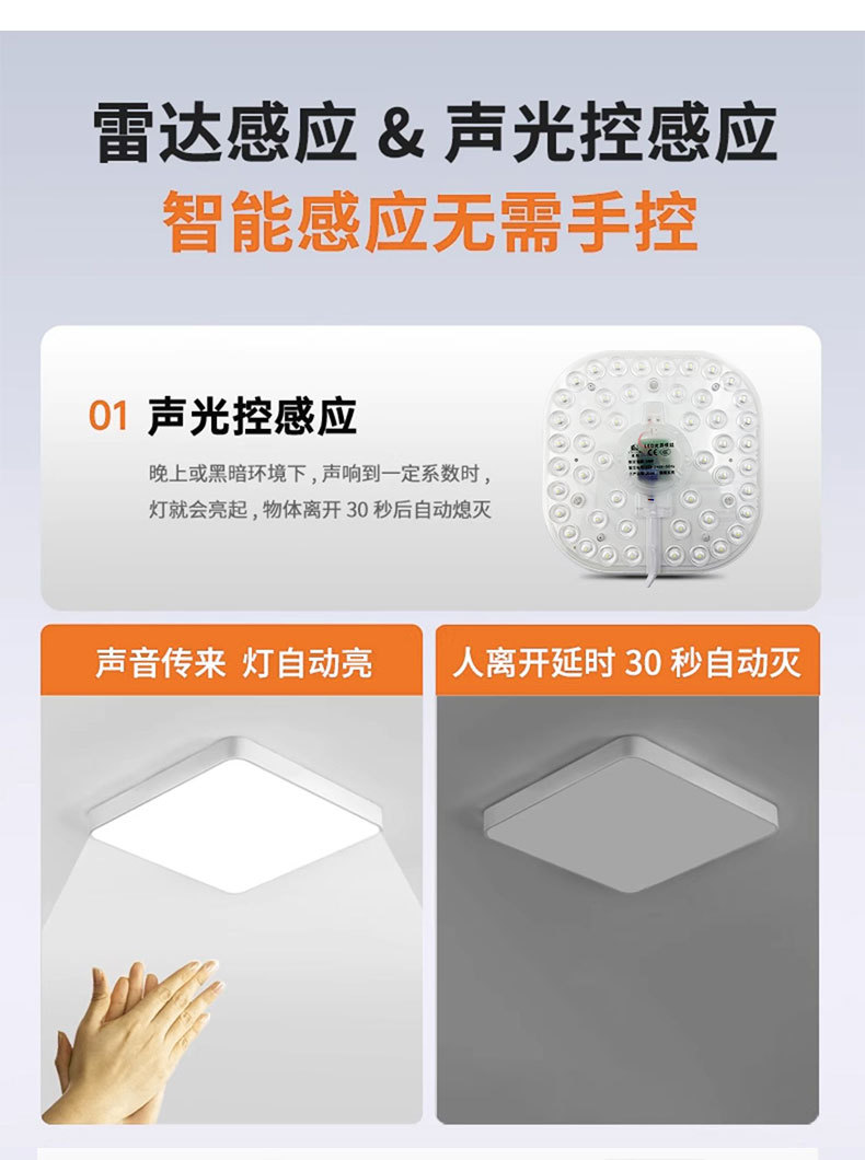 LED 유도 레이더 소리 및 조명 제어 심지 프로퍼티 복도 천장 조명 개조 램프 패널 적외선 교체 심지 모듈