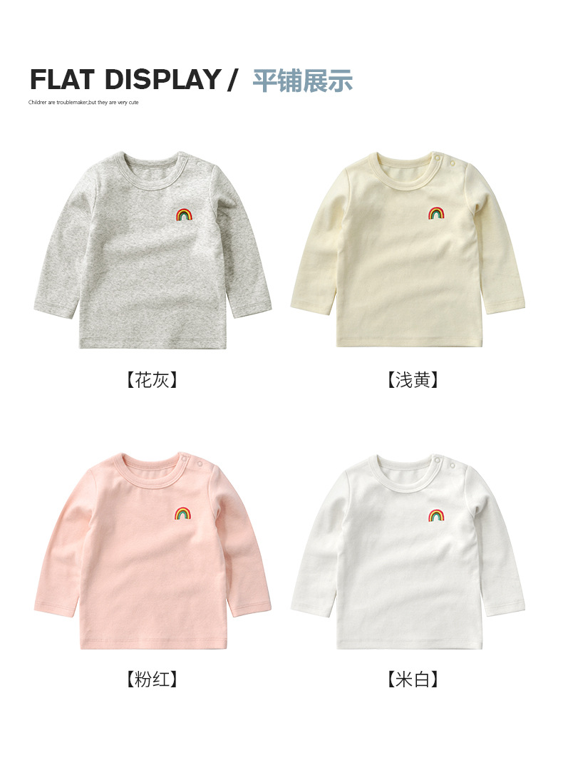 미니 존 어린이 탑 티셔츠 긴팔 샌딩 베이스 셔츠 자수 캐주얼 라운드 넥 순면 가을 옷 아기 남성