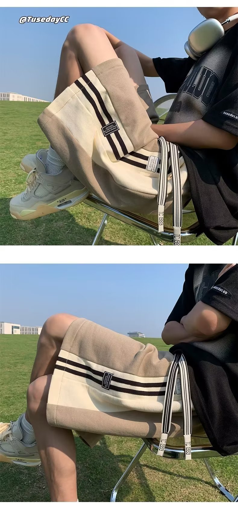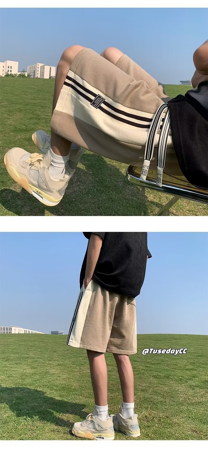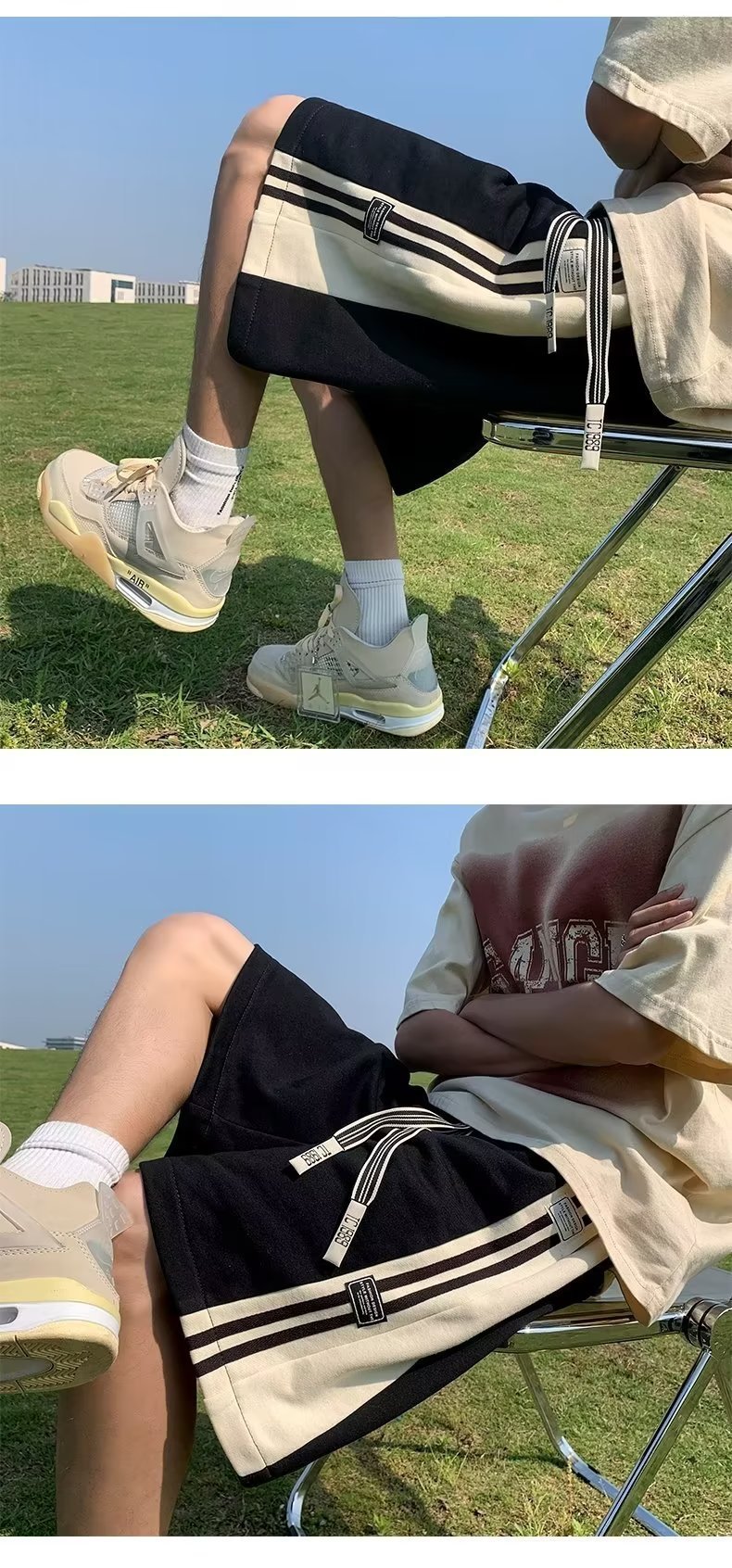 스트라이프 리본 라벨 반바지 남자 2024 여름 힙합 농구 반바지 유행 브랜드 루즈 캐주얼 스포츠 바지스토어 가기