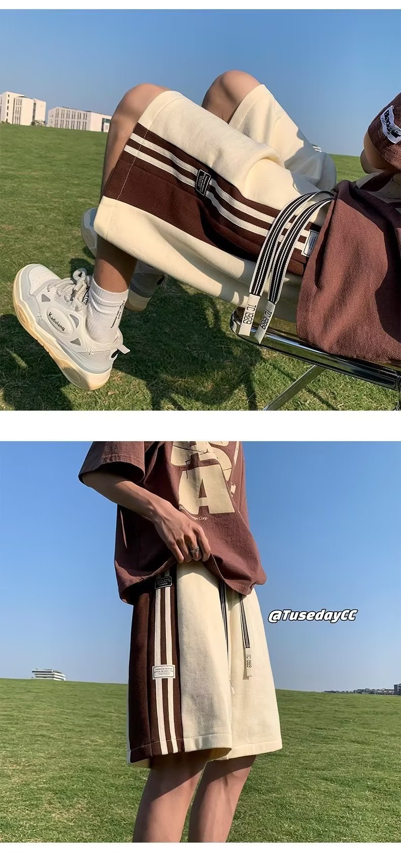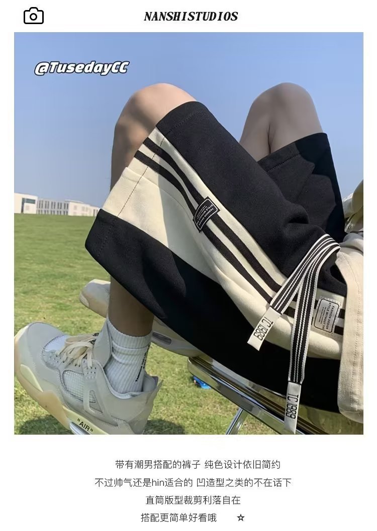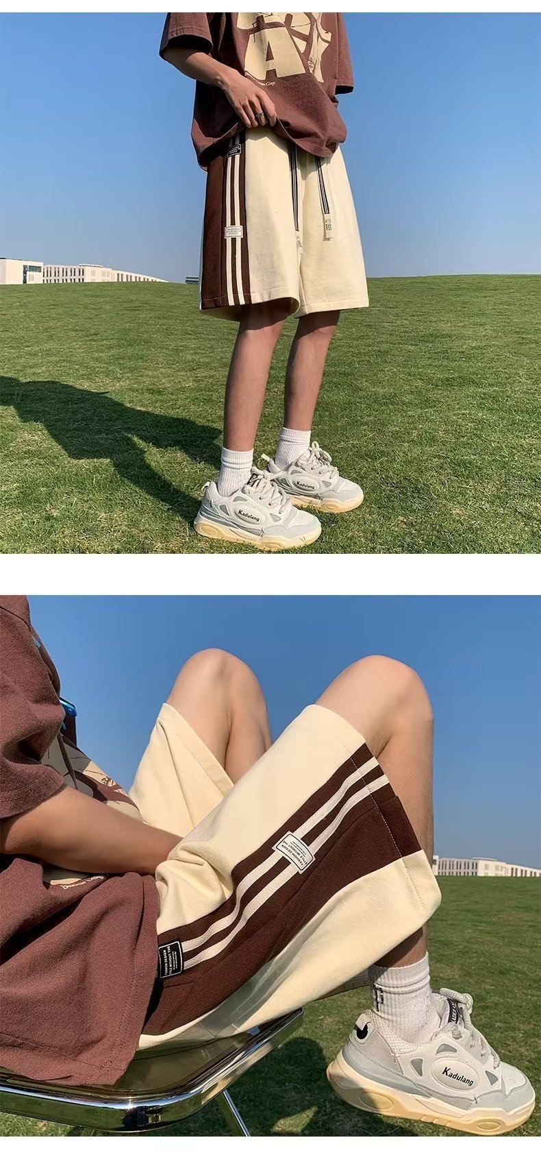 스트라이프 리본 라벨 반바지 남자 2024 여름 힙합 농구 반바지 유행 브랜드 루즈 캐주얼 스포츠 바지스토어 가기
