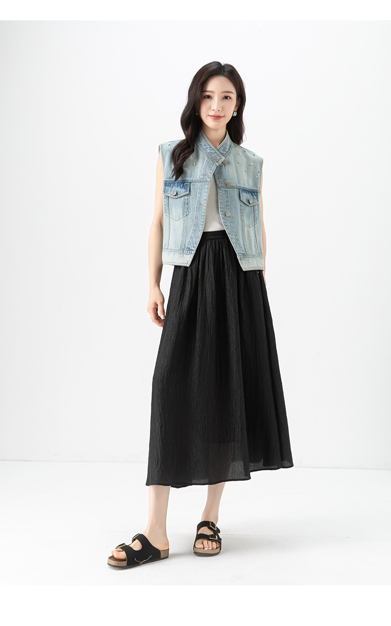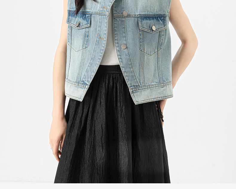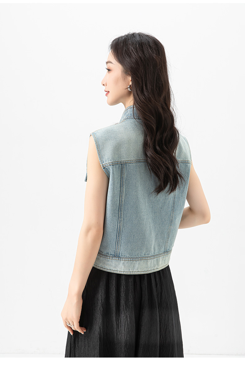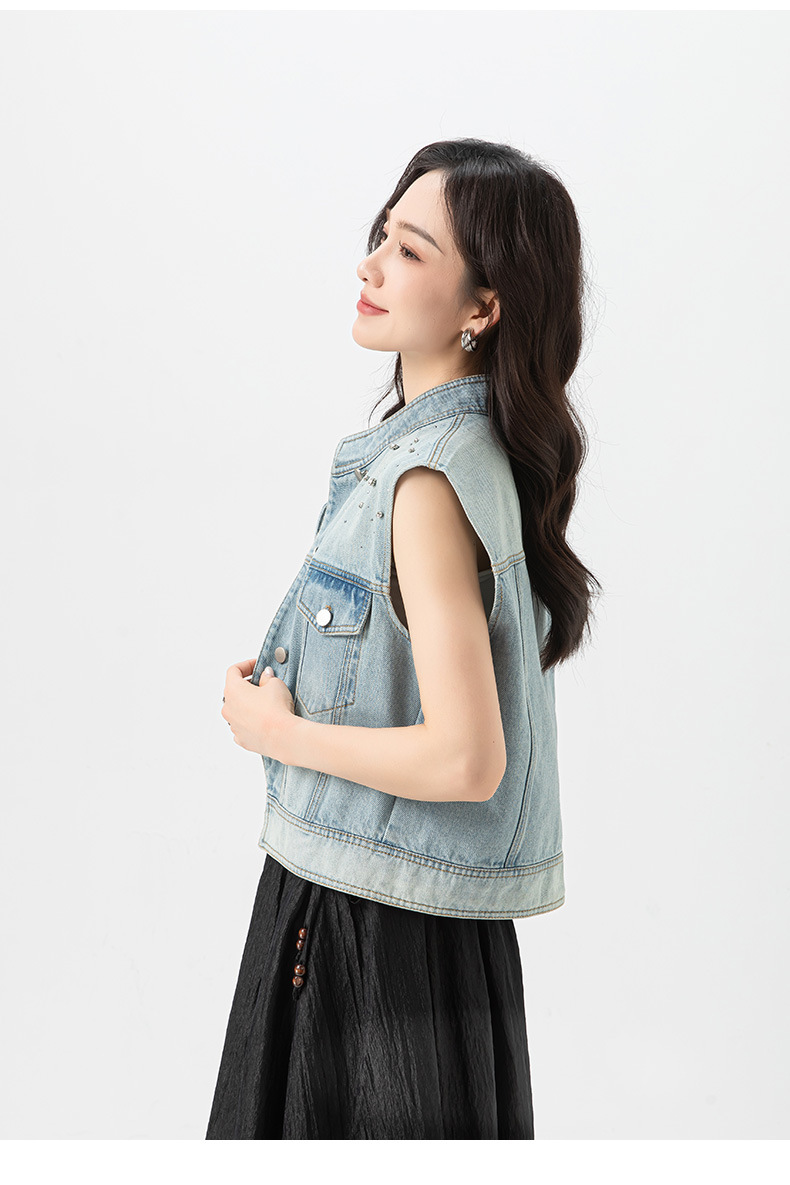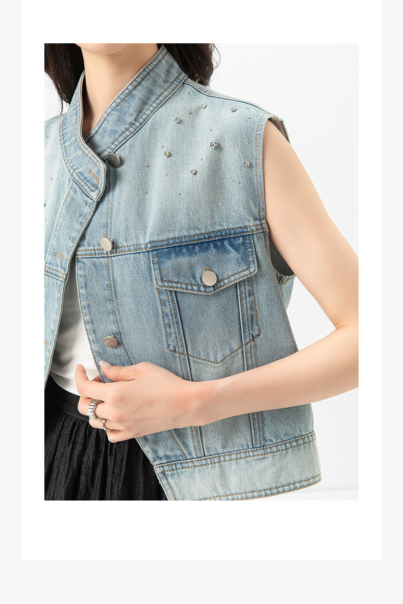 Xinge 패셔너블 오브리크 플래켓 데님 조끼 여자 여름 새로운 도착 다이아몬드 느슨한 슬림 소매 자켓스토어 가기