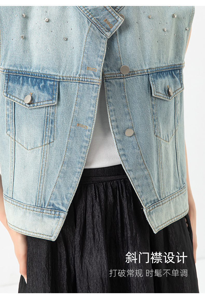Xinge 패셔너블 오브리크 플래켓 데님 조끼 여자 여름 새로운 도착 다이아몬드 느슨한 슬림 소매 자켓