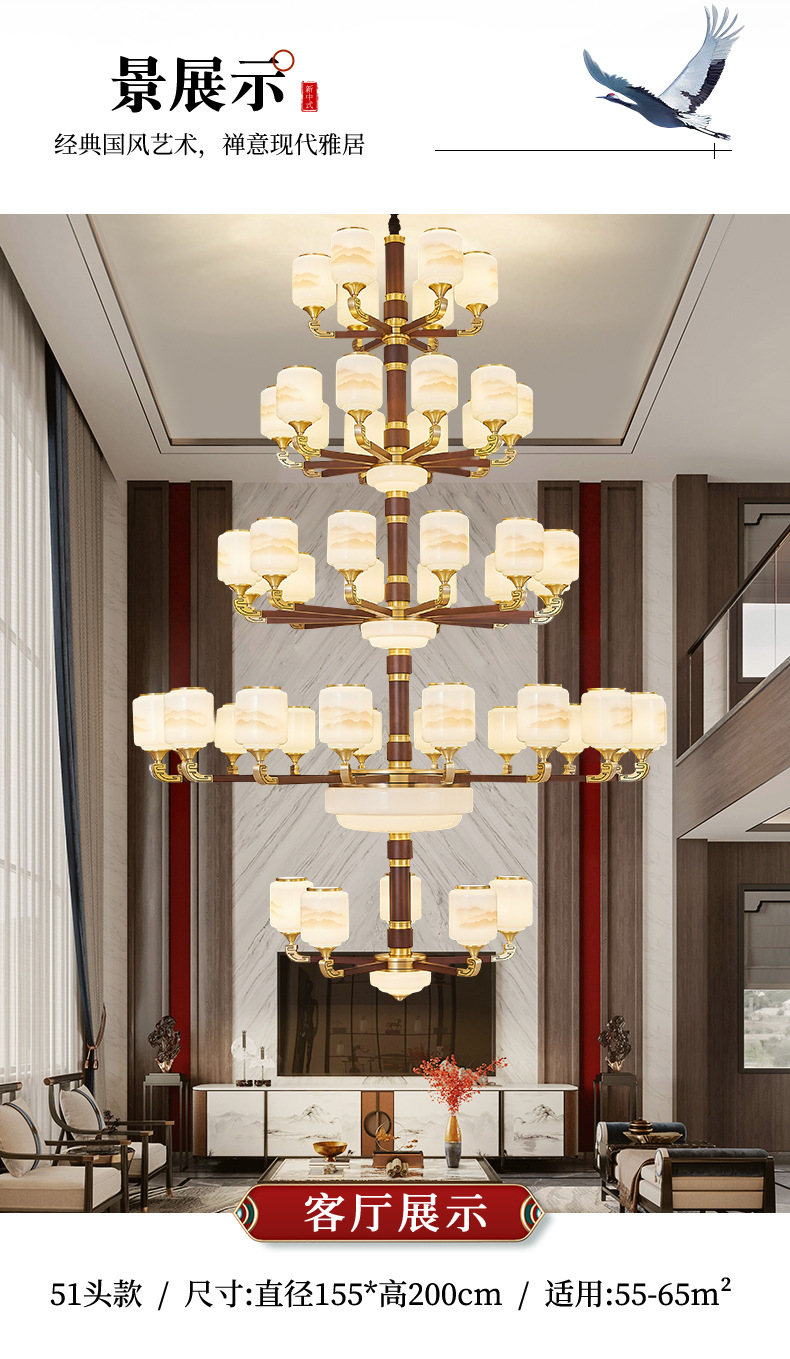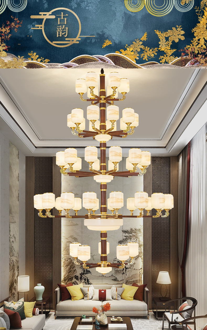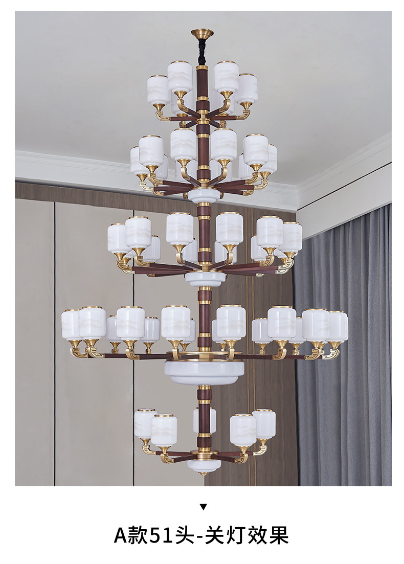 새로운 중국 스타일 거실 샹들리에 현대 간단한 자체 빌드 빌라 홀 솔리드 우드 샹들리에 하이 엔드 대기 가정용 램프