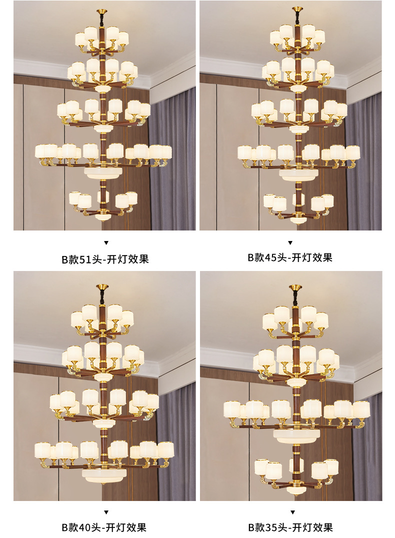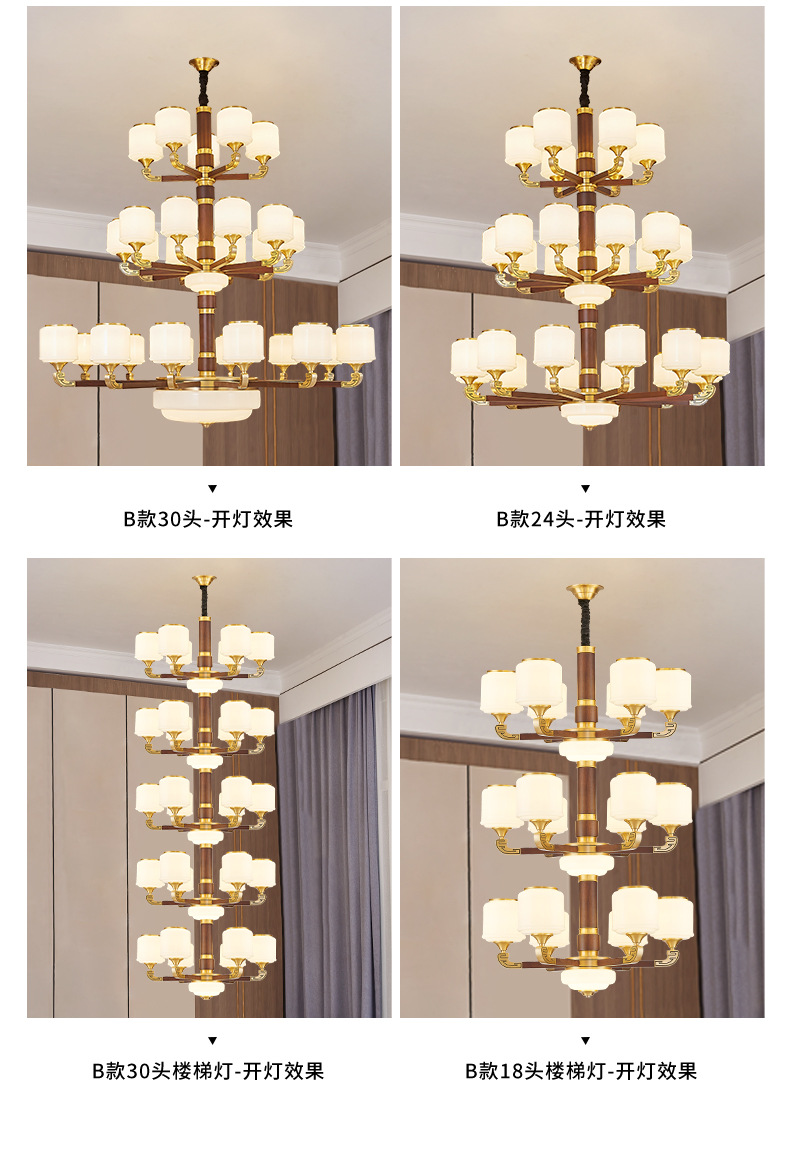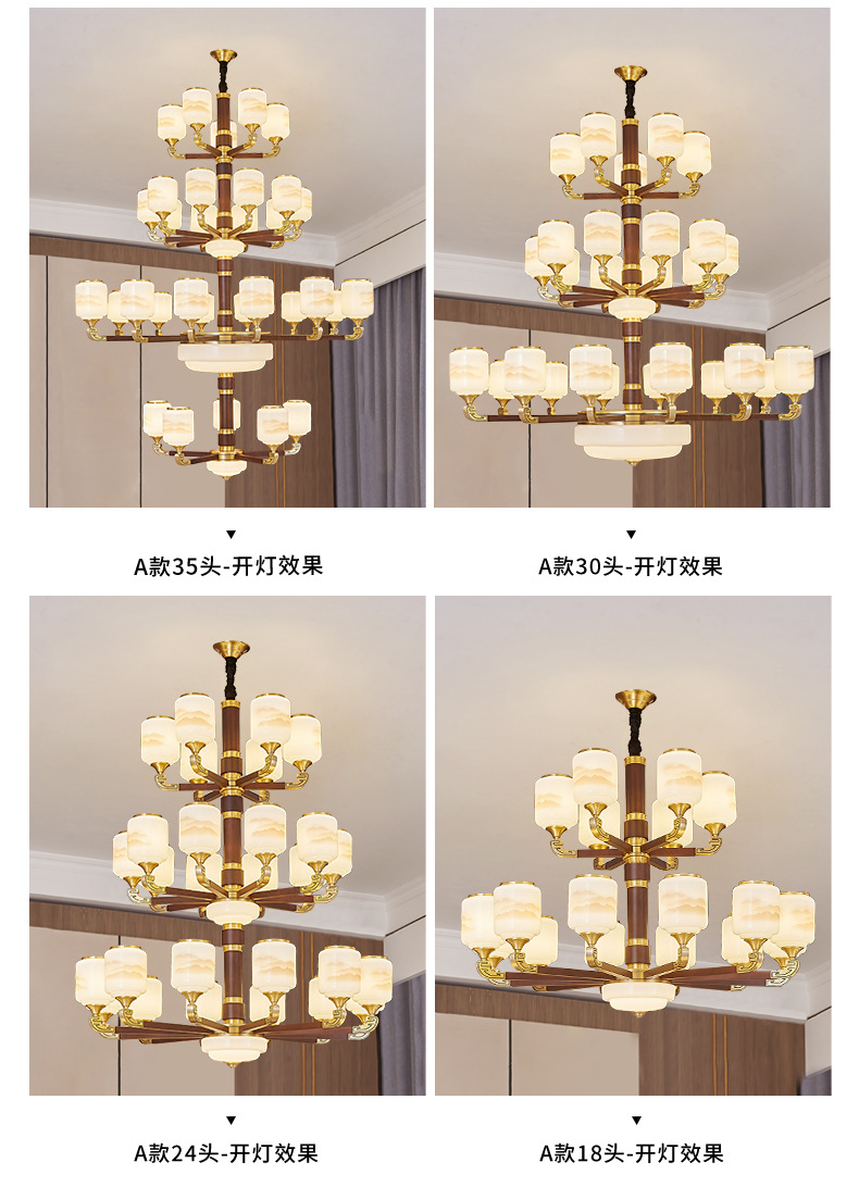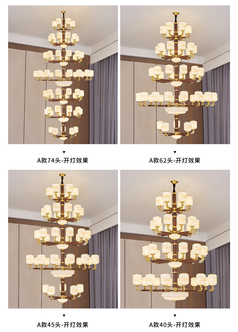 새로운 중국 스타일 거실 샹들리에 현대 간단한 자체 빌드 빌라 홀 솔리드 우드 샹들리에 하이 엔드 대기 가정용 램프