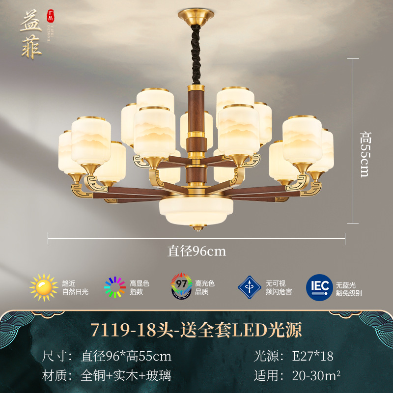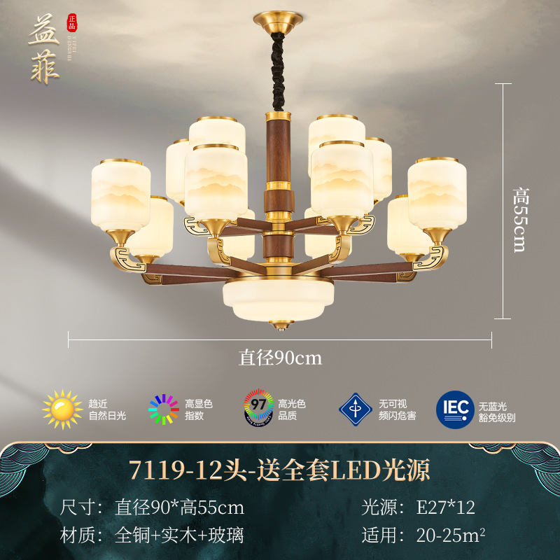 새로운 중국 스타일 거실 샹들리에 현대 간단한 자체 빌드 빌라 홀 솔리드 우드 샹들리에 하이 엔드 대기 가정용 램프스토어 가기