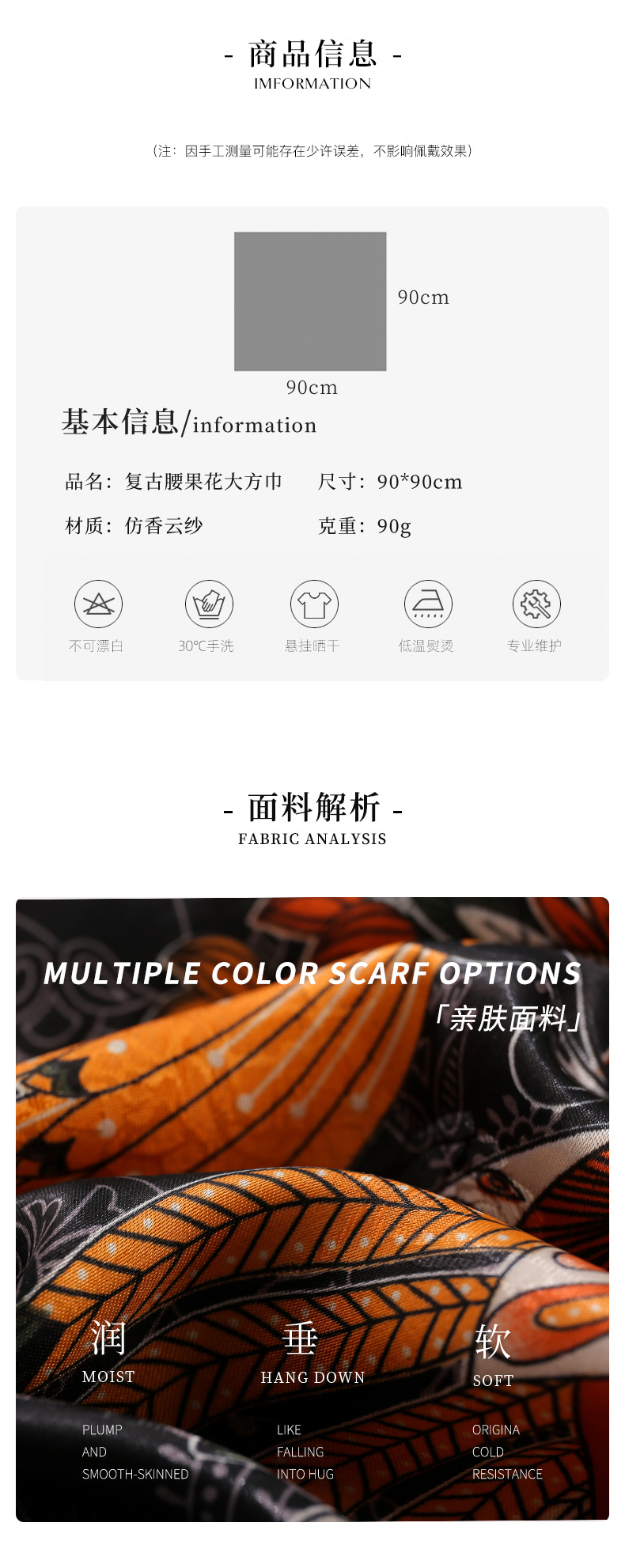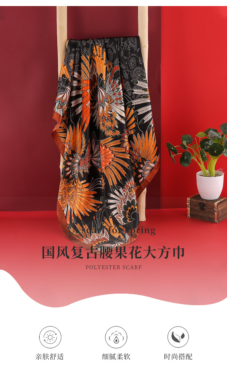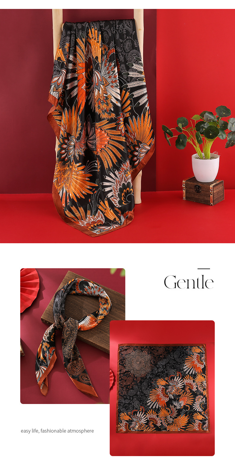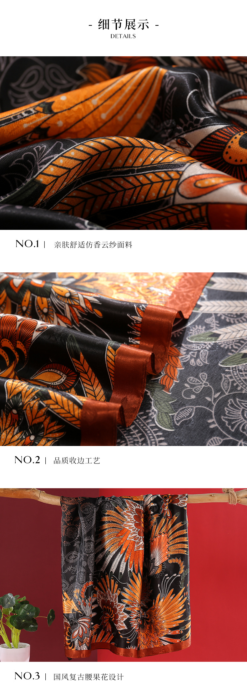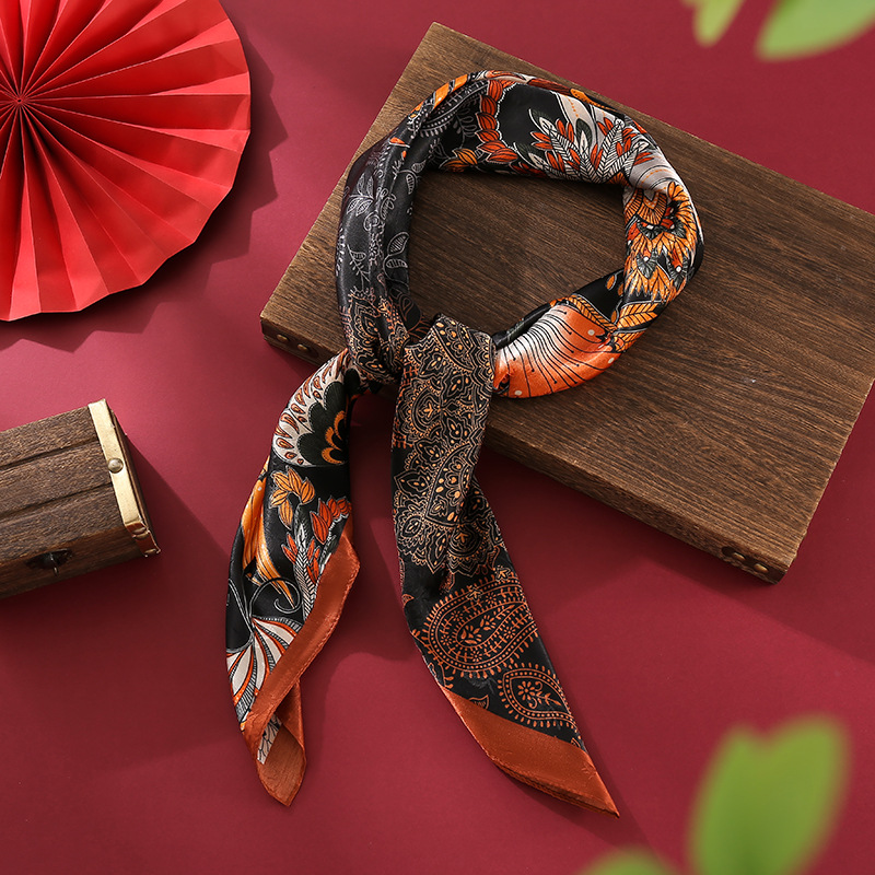 국가 스타일의 빈티지 캐슈 너트 패턴 실크 90 스퀘어 스카프 여성 바람 빛 럭셔리 실크 슬립 모방 향기로운 구름 원사 스카프 도매