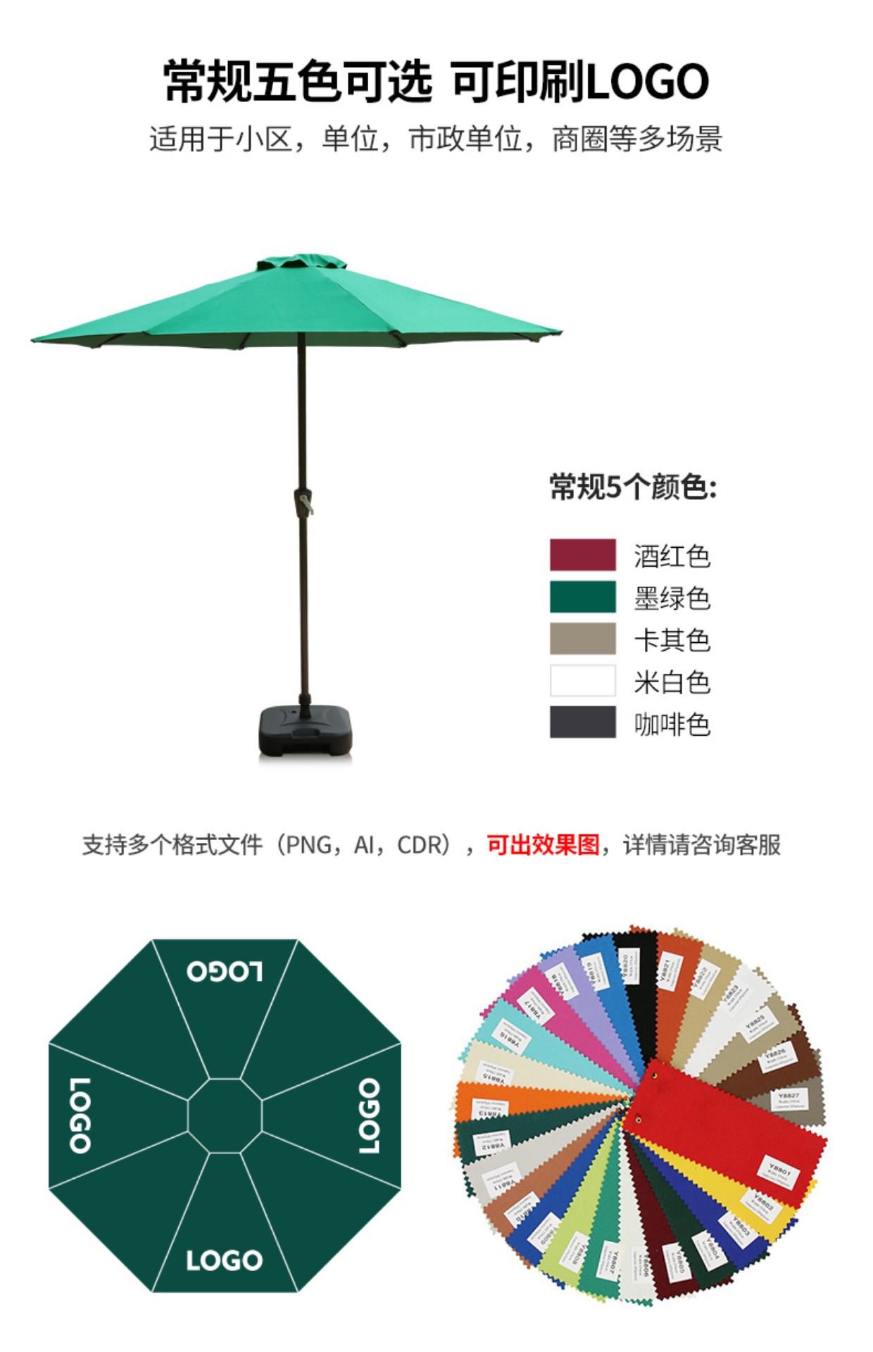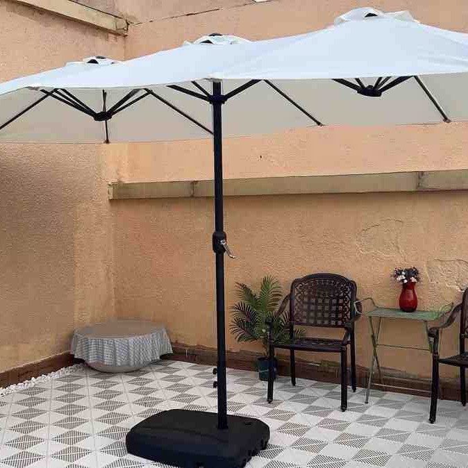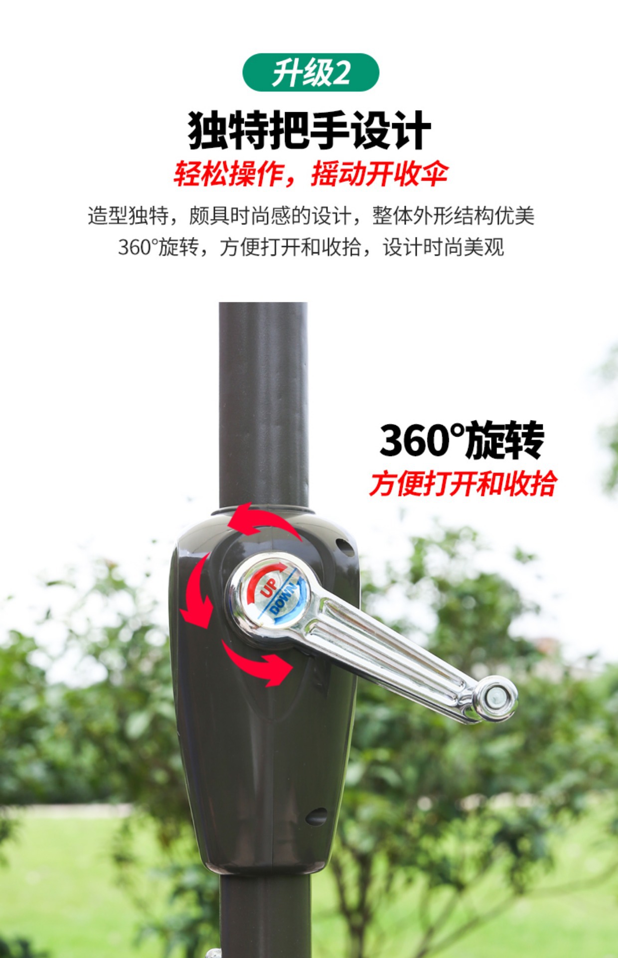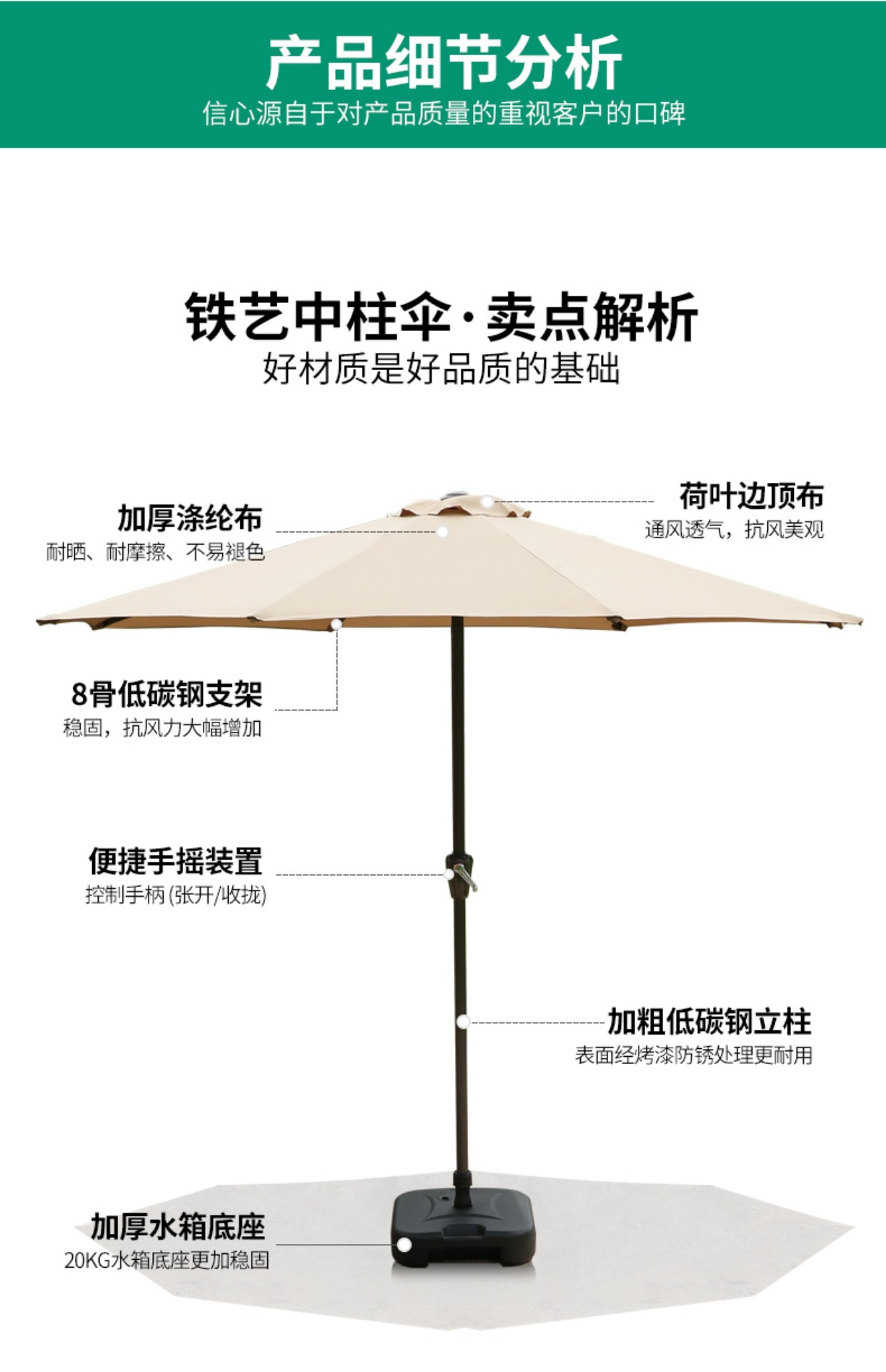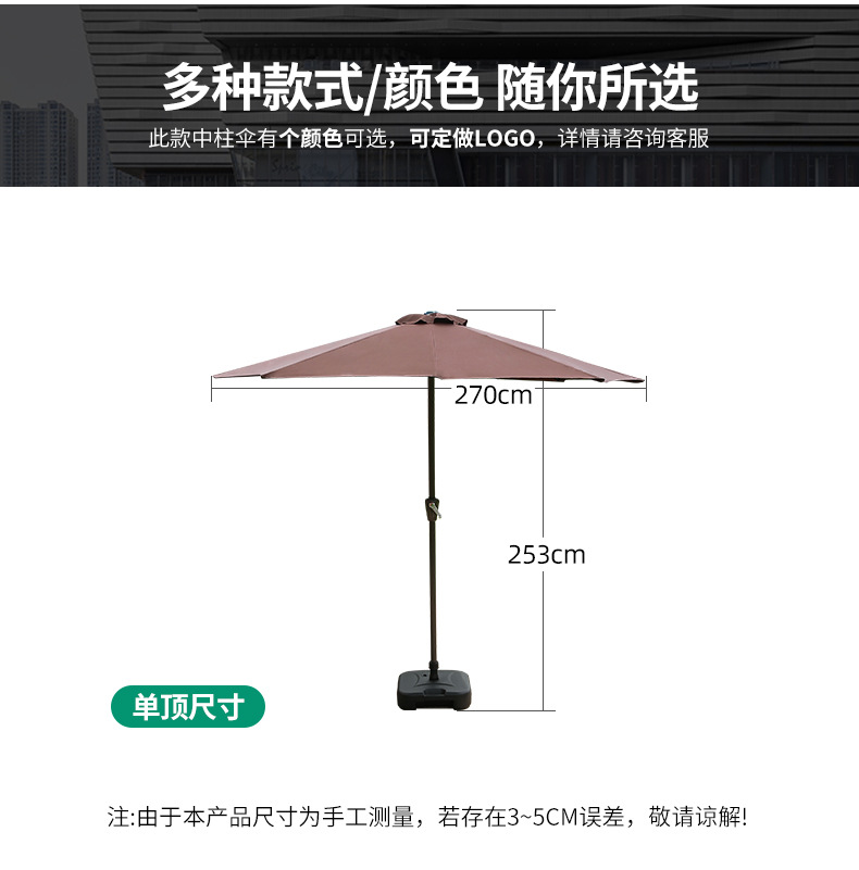 • 회전 가능한 단일 상단 중앙 기둥 우산 - Φ 2.7m - 물 탱크 포함, 다양한 색상 사용 가능