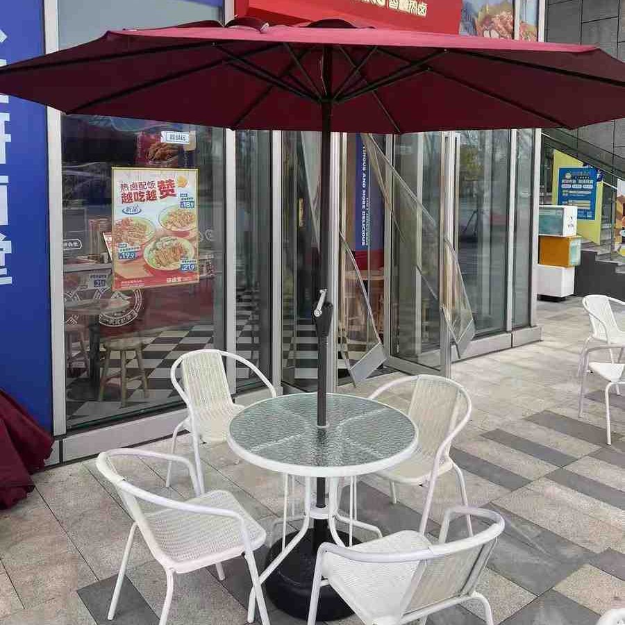 • 중앙 기둥 우산 2.7m개 + 플라스틱 나무 의자 4개 + 80제곱미터 테이블 1개