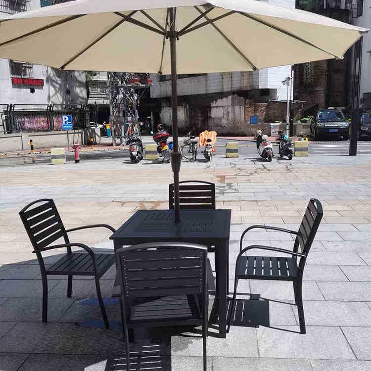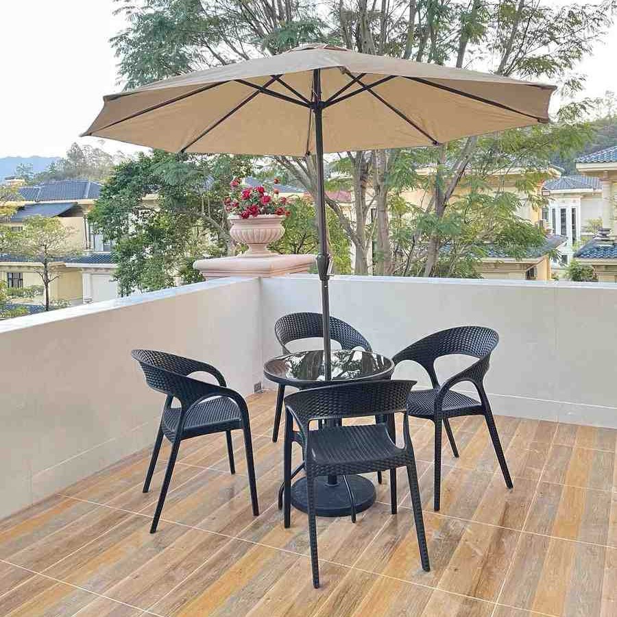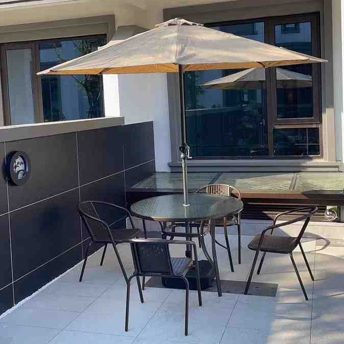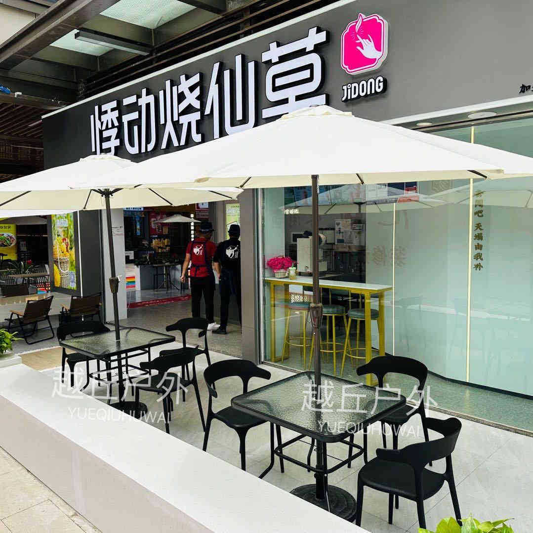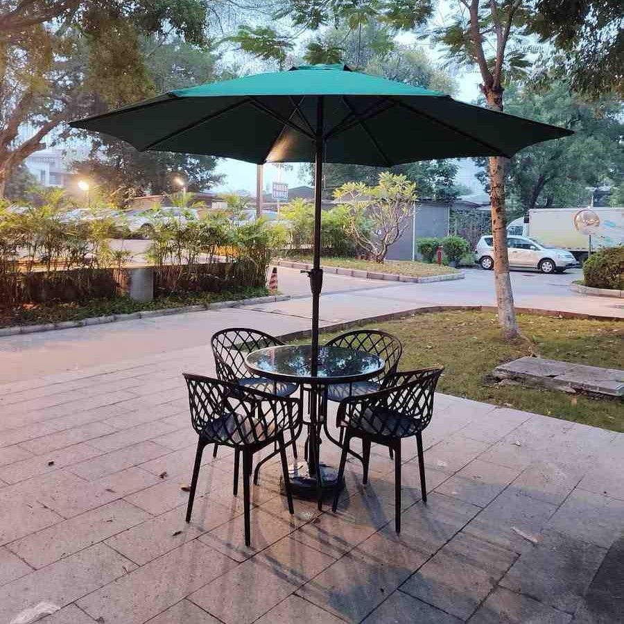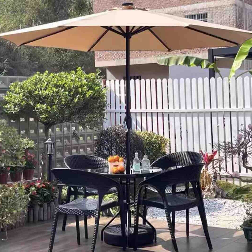 • 중앙 기둥 우산 2.7m개 + 검은색 뿔 의자 4개 + 80CM 정사각형 물 무늬 유리 사각 테이블