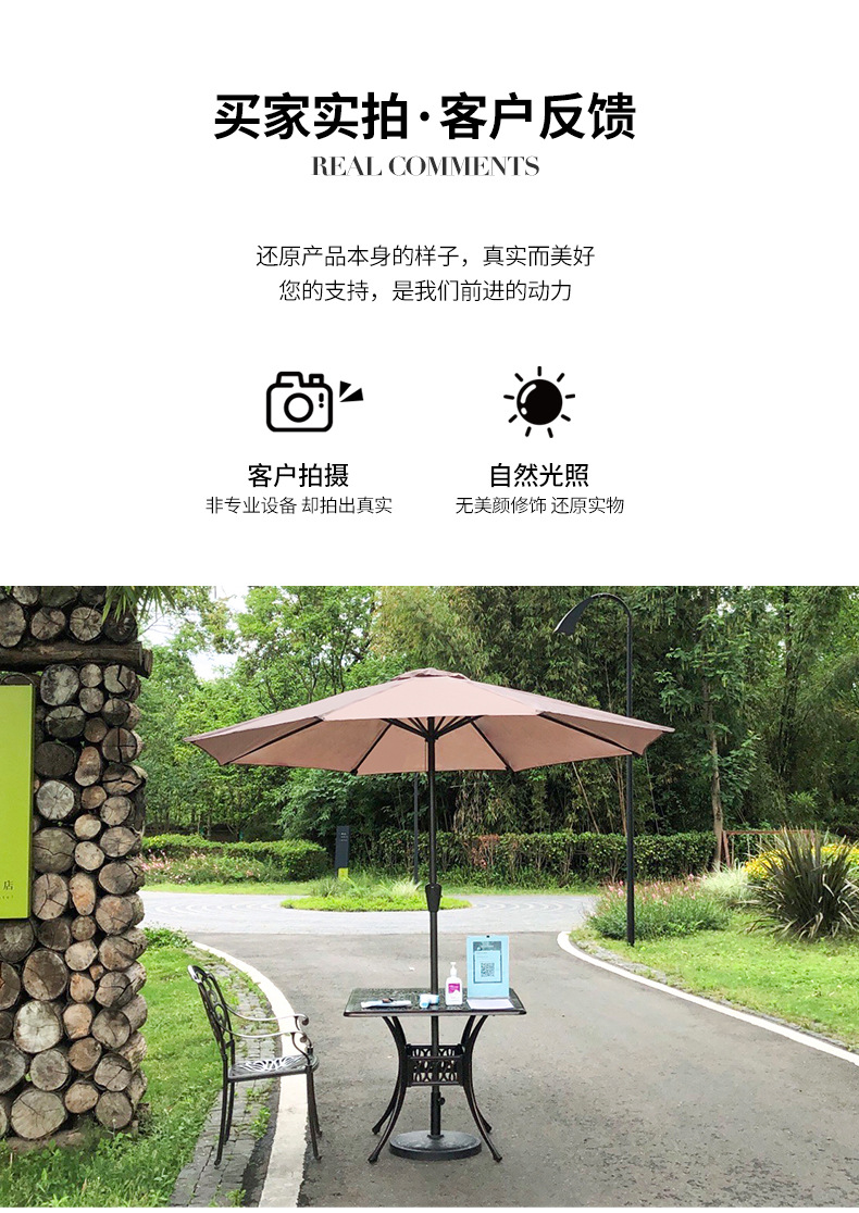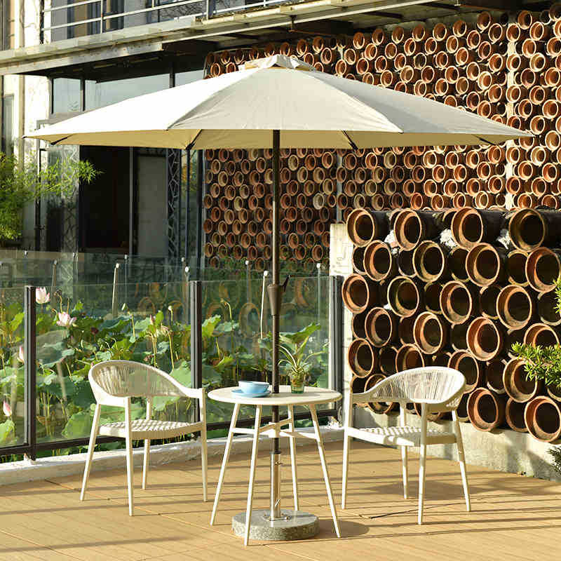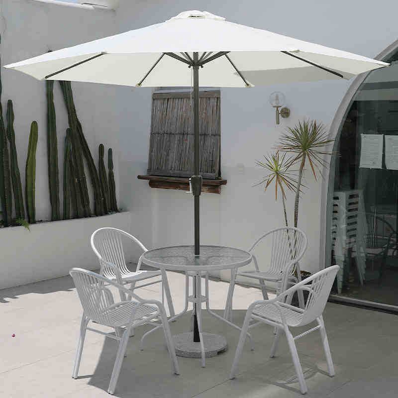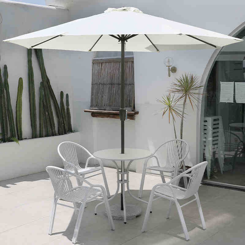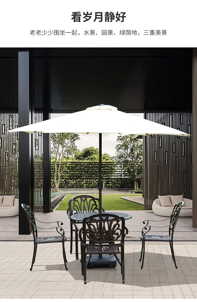 • 중앙 기둥 우산 2.7m개 + 주조 알루미늄 의자 4개 + 주조 알루미늄 Φ80CM 원형 테이블 1개