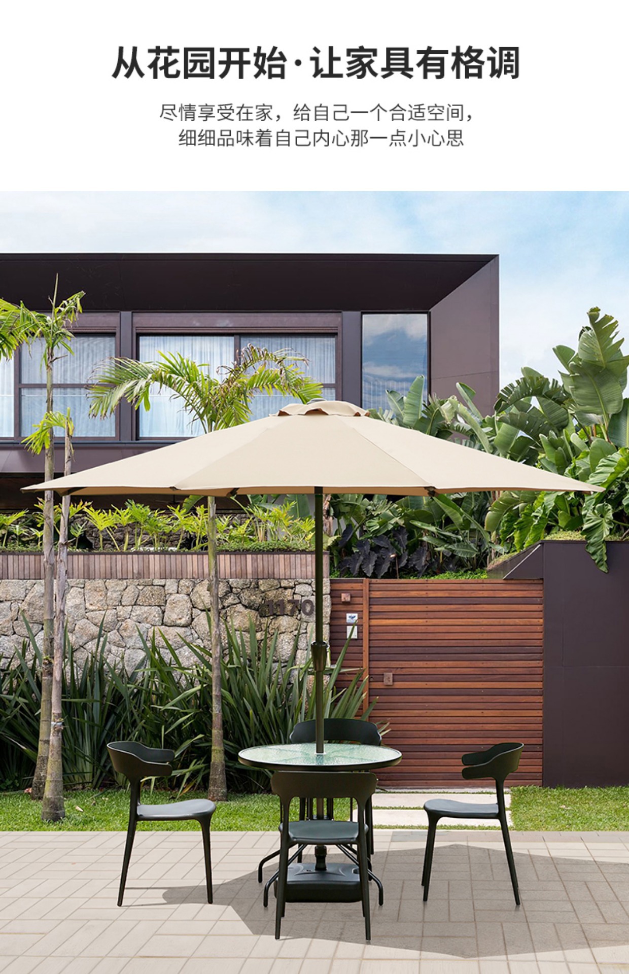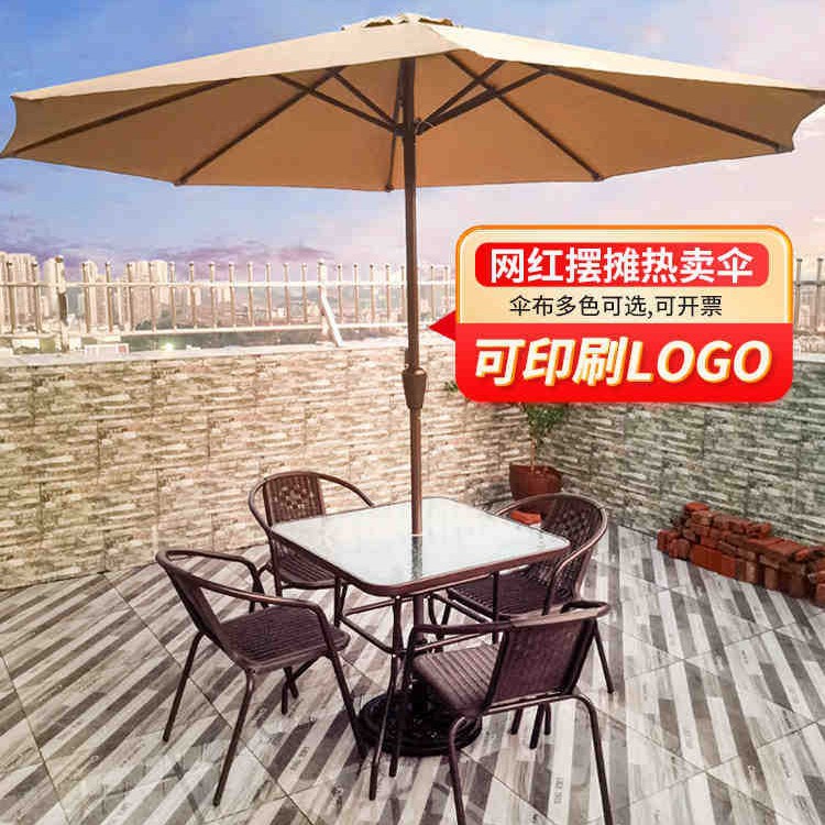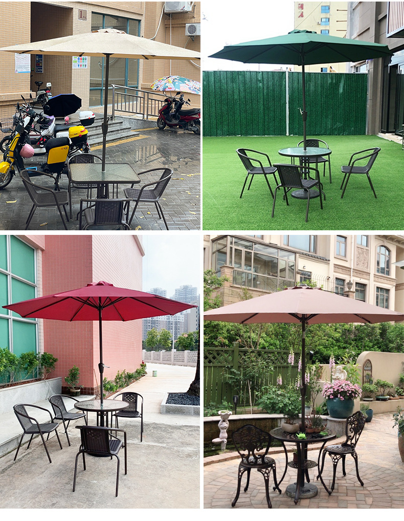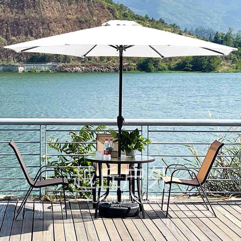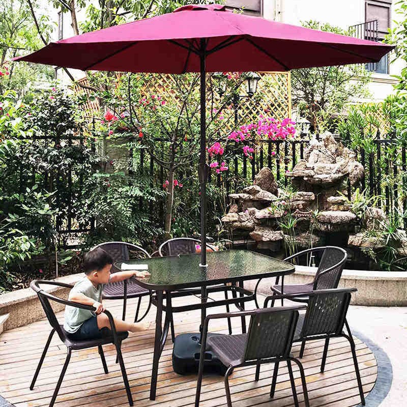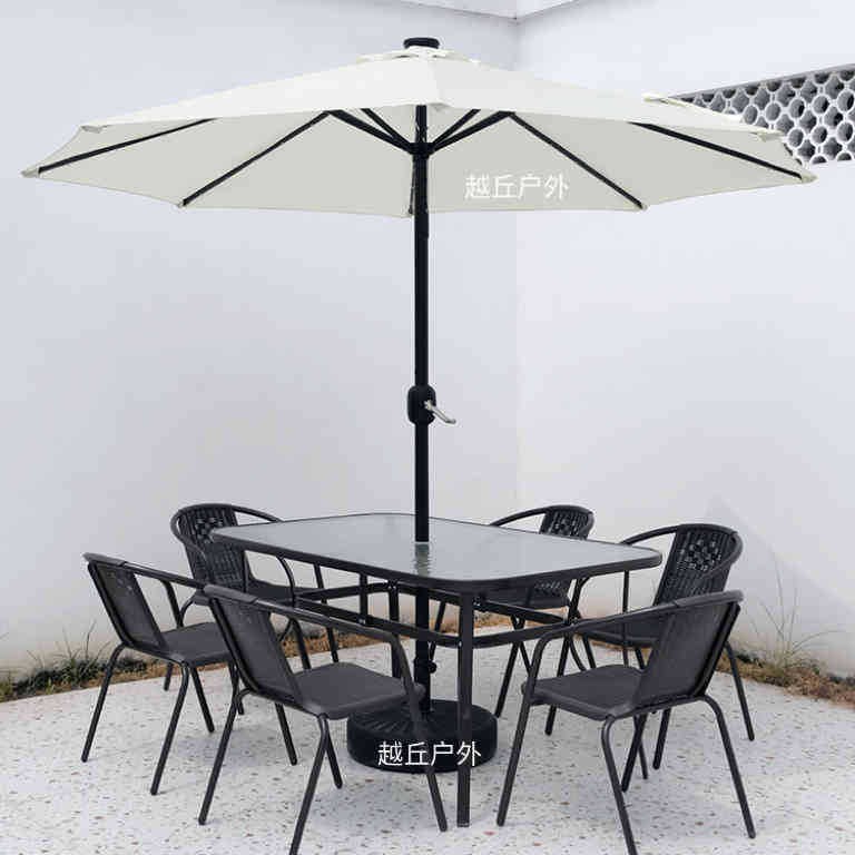 • 램프 비즈 2.7m 중간 기둥 우산 + Duoduo 의자 6개 + 직사각형 120*80CM 물 무늬 유리 사각 테이블