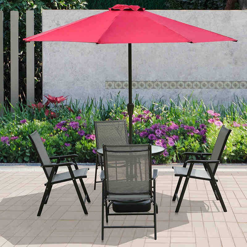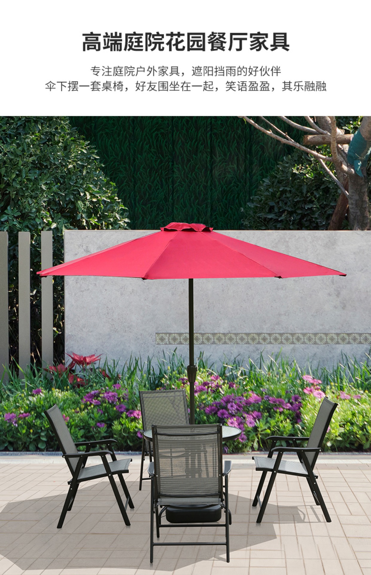 • 중앙 기둥 우산 2.7m개 + 메쉬 의자 4개 + 탄소강 Φ70CM 원형 테이블 1개