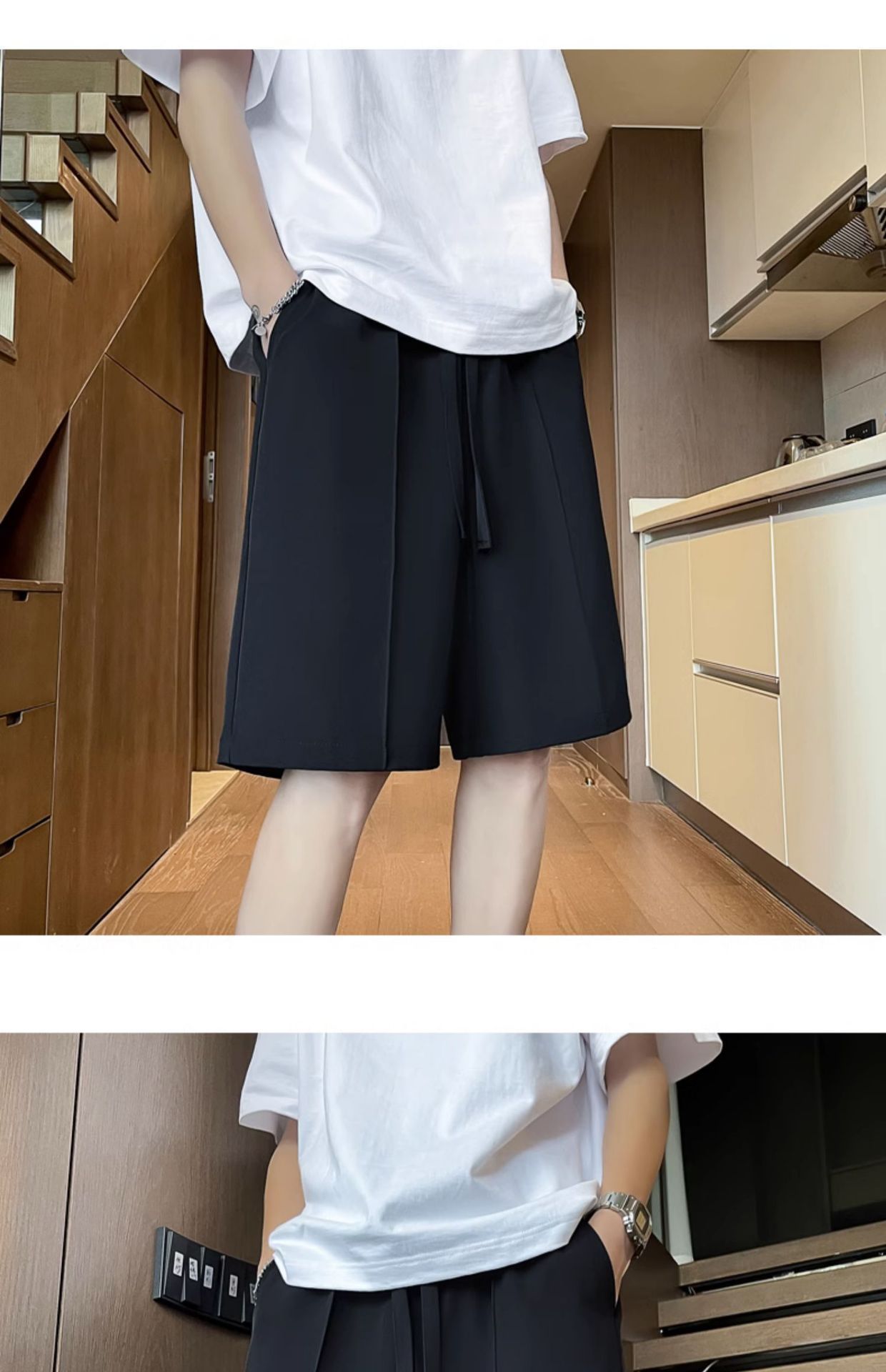 아이스 실크 세트 반바지 남자의 여름 얇은 감각 스트레이트 바지 느슨한 플러스 사이즈 트렌디 한 캐주얼 바지