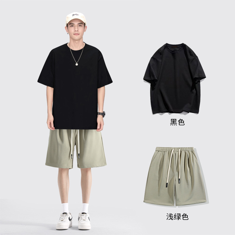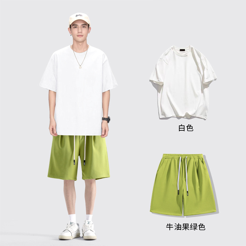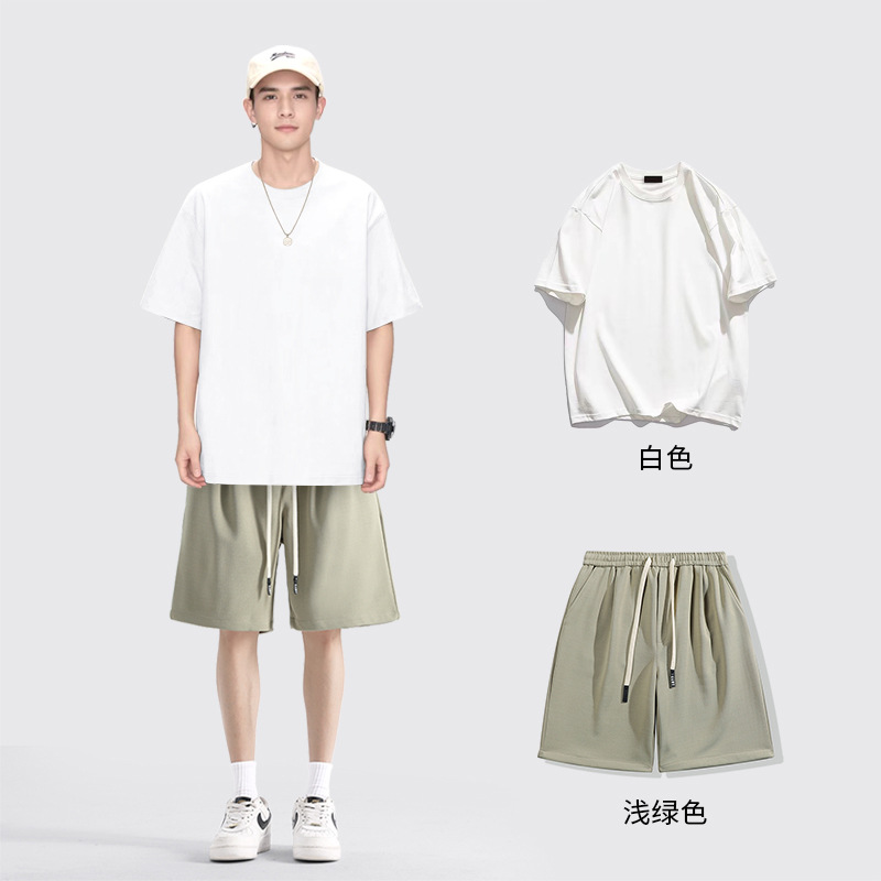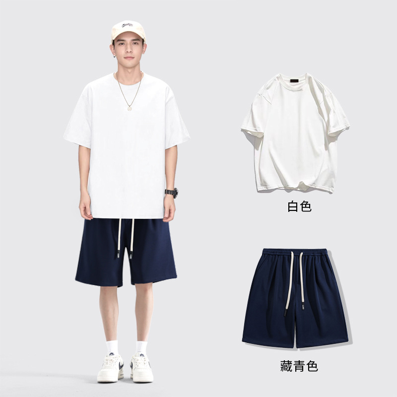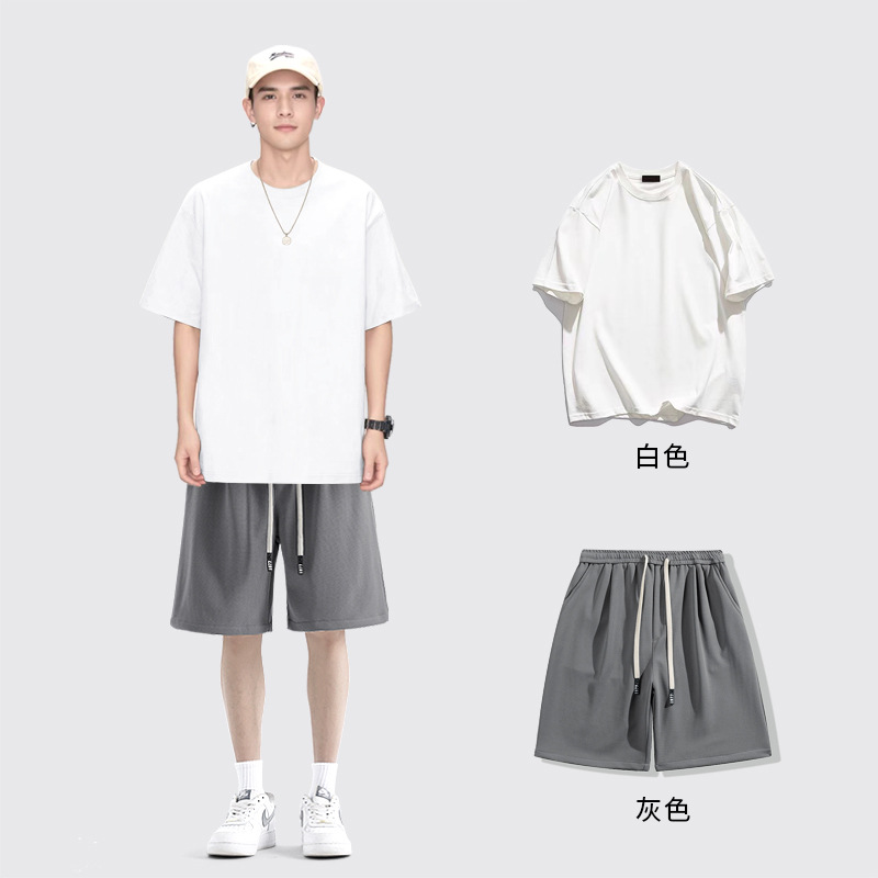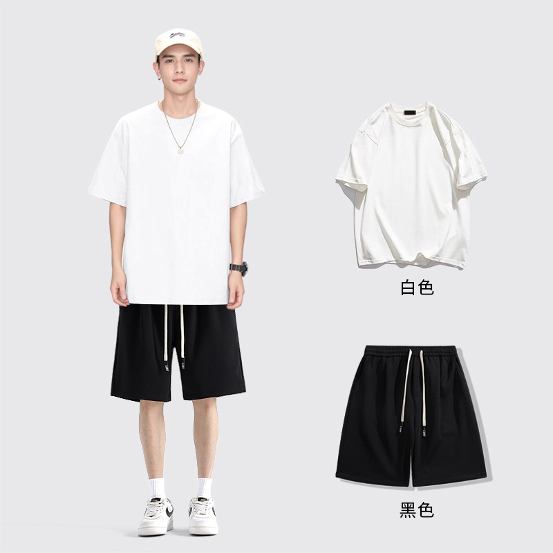 [세트] 헤비 솔리드 컬러 반팔 티셔츠 남성용 하의 셔츠 화이트 바디 탑과 퓨어 화이트 탑 남성용 반팔 티셔츠