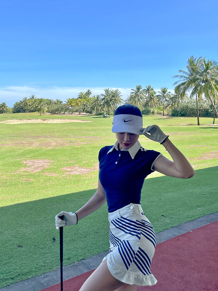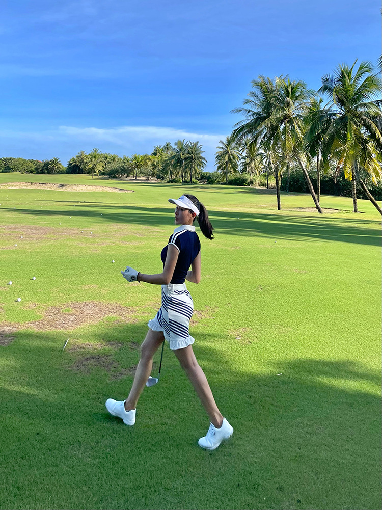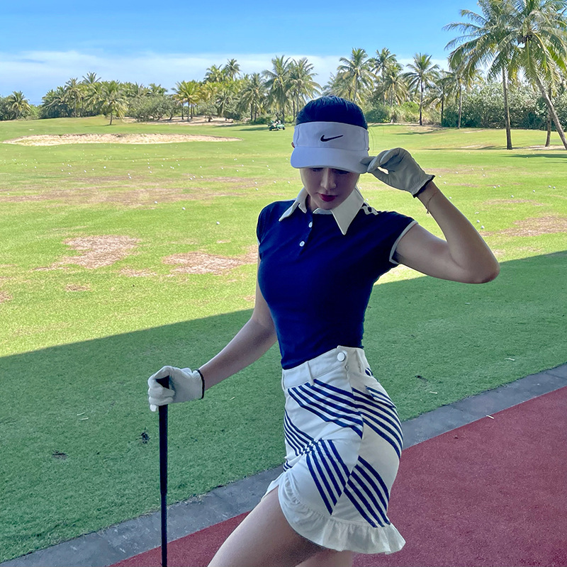 골프 의류 여성의 빠른 건조 스포츠 POLO 칼라 컬러 블록 캐주얼 탑 연꽃 잎 국경 걷기 짧은 문화