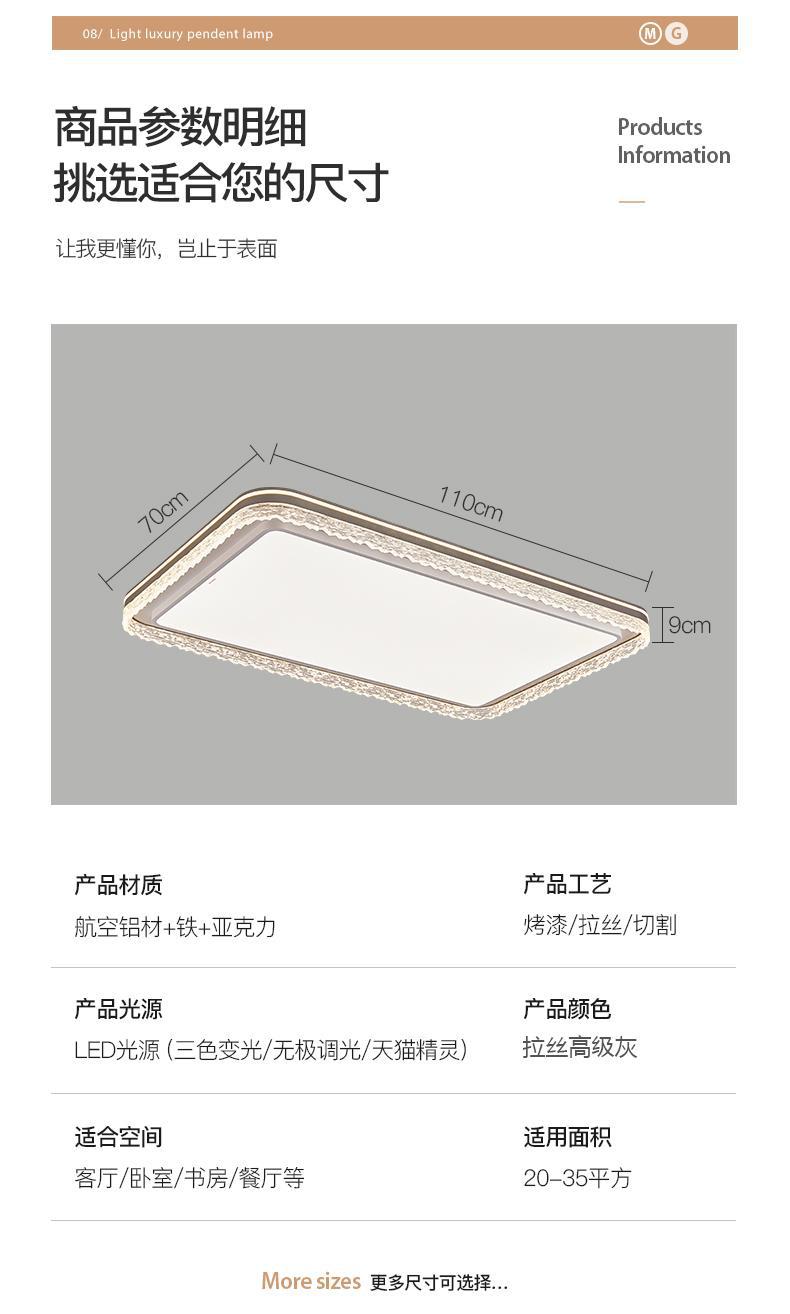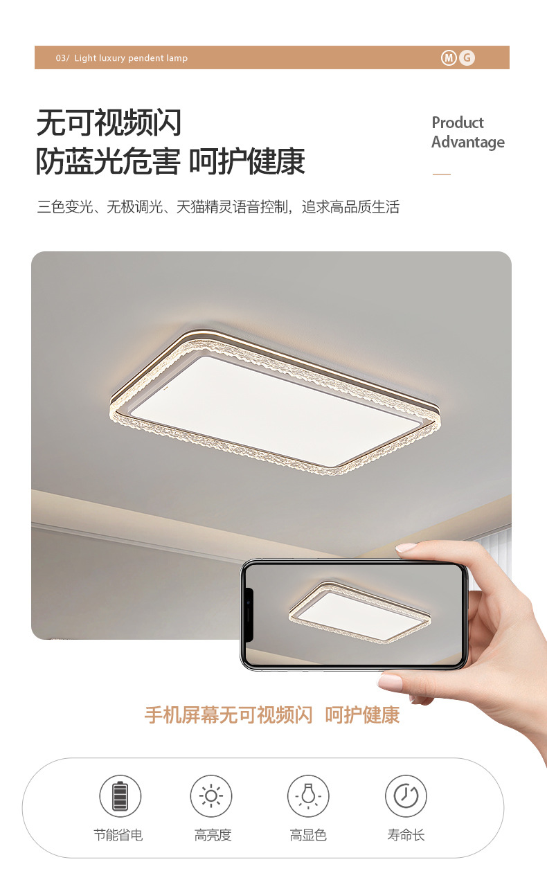 새로운 하이 엔드 분위기 현대 간단한 방 조명 럭셔리 전체 스펙트럼 눈 보호 거실 침실 천장 조명 Zhongshan 램프스토어 가기
