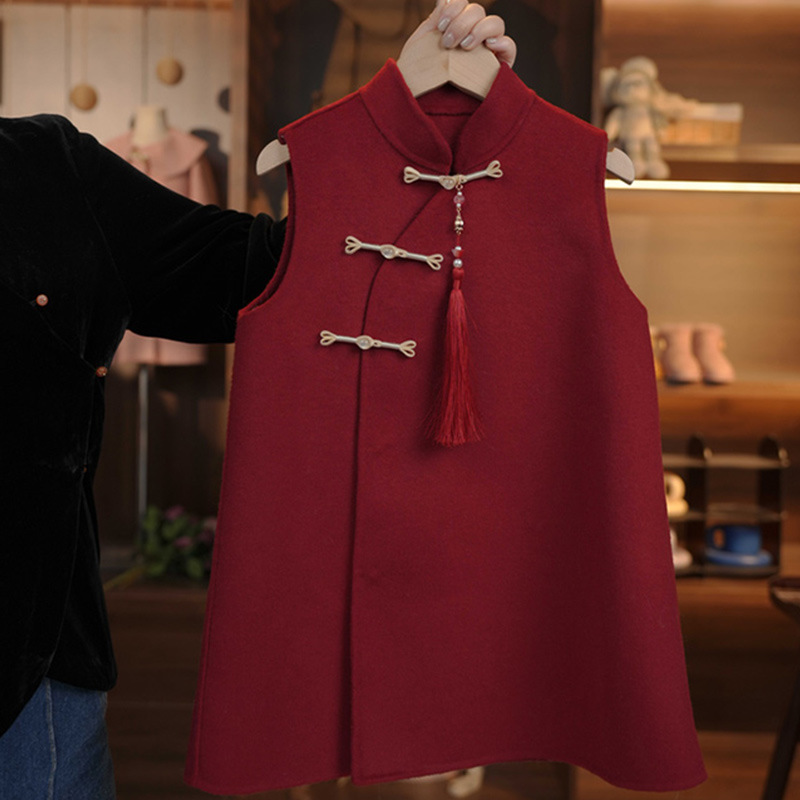 어린이 신년 원피스 2024 가을과 겨울 새 어린이 양면 양면 양모 조끼 원피스 여성의 보물 중국식 휴일 원피스스토어 가기