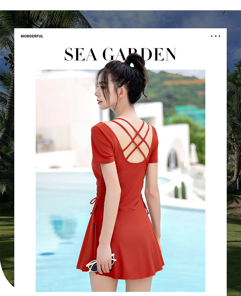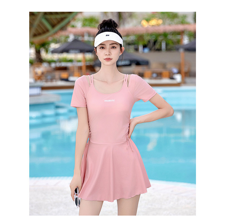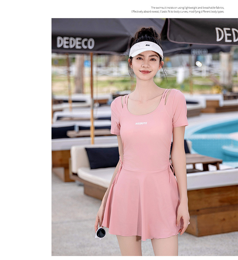 2025 솔리드 컬러 스포츠 수영복, 보수적인 배 커버, 슬리밍 원피스 스커트 수영복, 온천 사각 수영복스토어 가기
