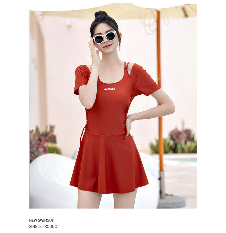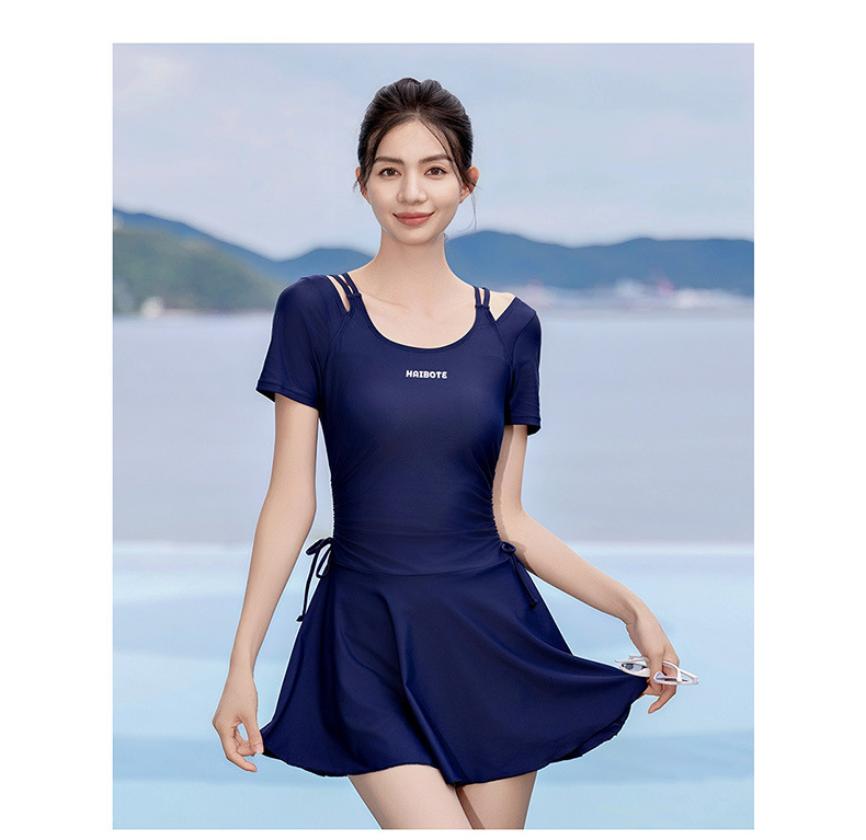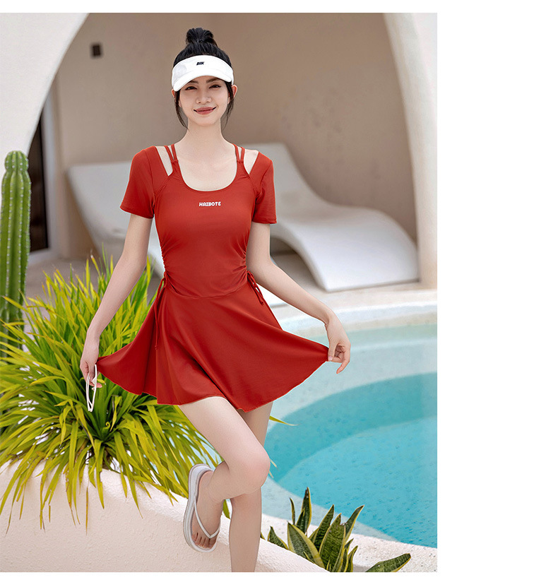 2025 솔리드 컬러 스포츠 수영복, 보수적인 배 커버, 슬리밍 원피스 스커트 수영복, 온천 사각 수영복