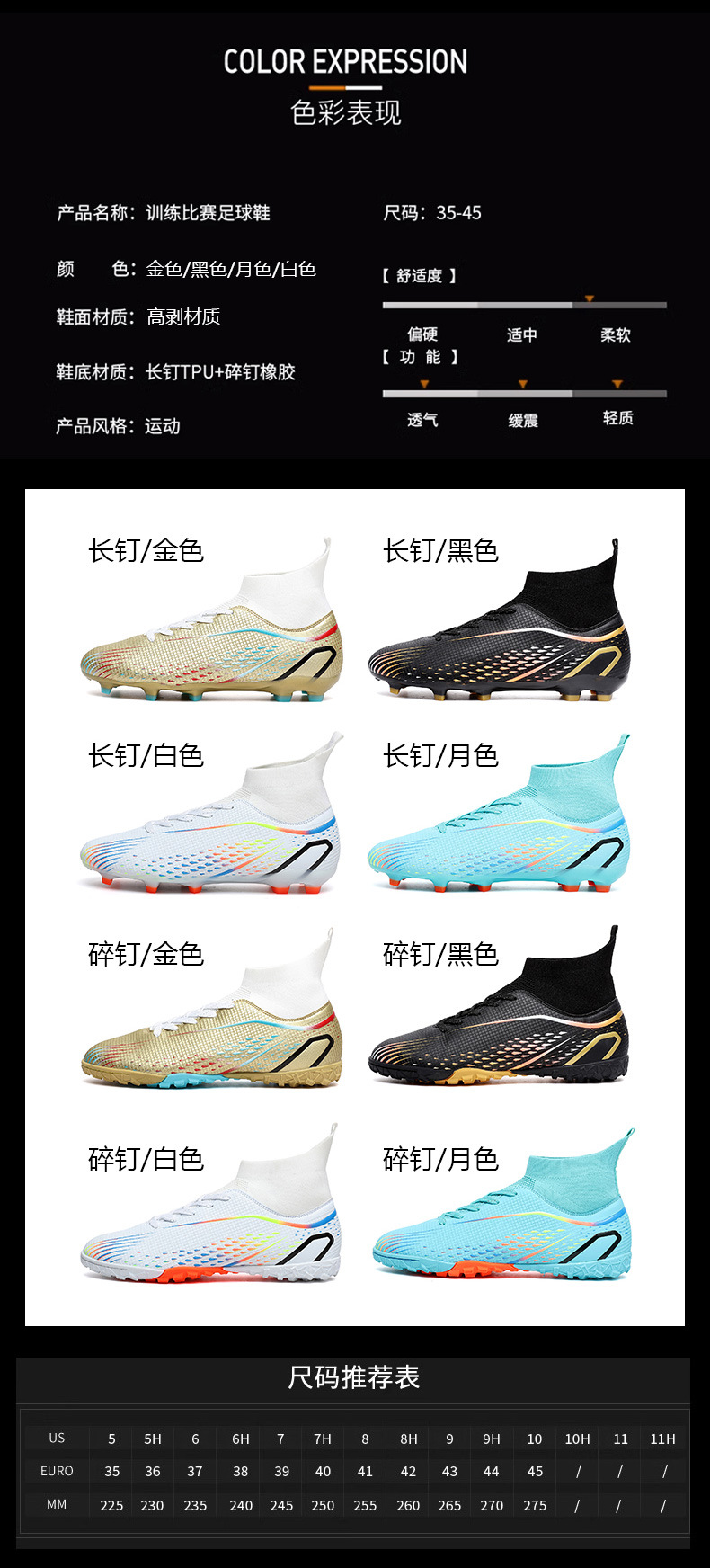 2024 국경 간 새로운 학생 야외 스포츠 축구 신발 남성 전문 경기 신발 여성 스포츠 훈련 신발